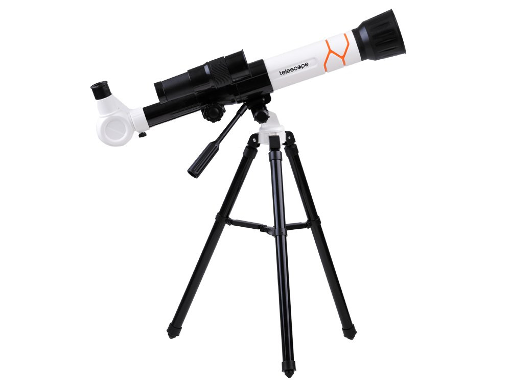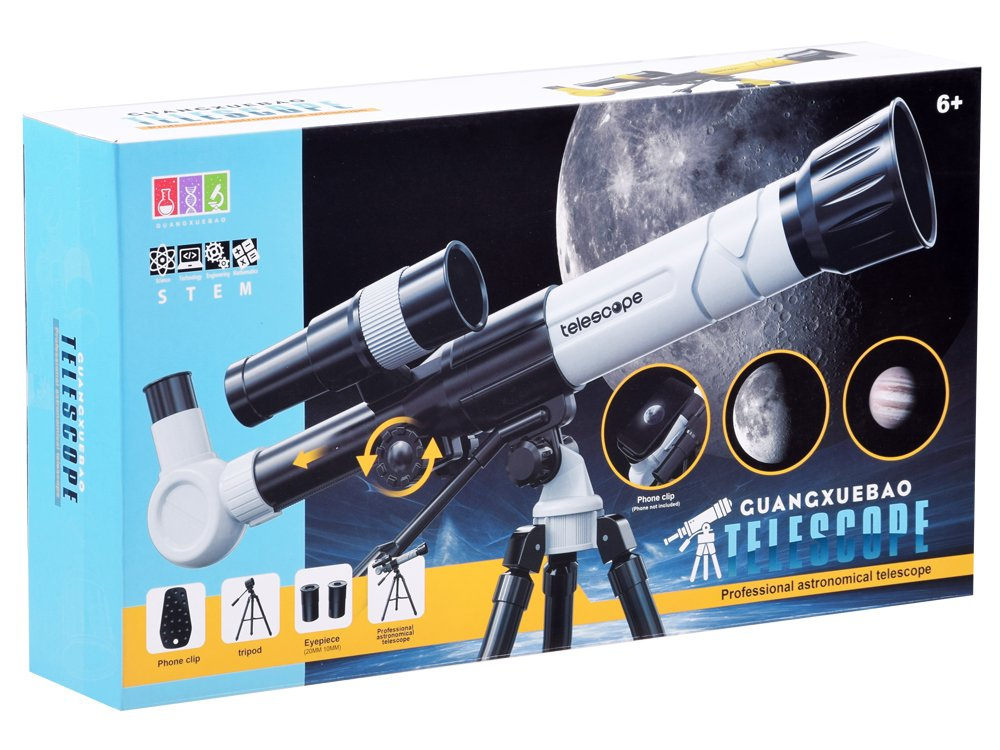 Dalekohled a stativ jsou vyrobeny z plastu.