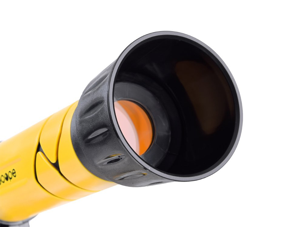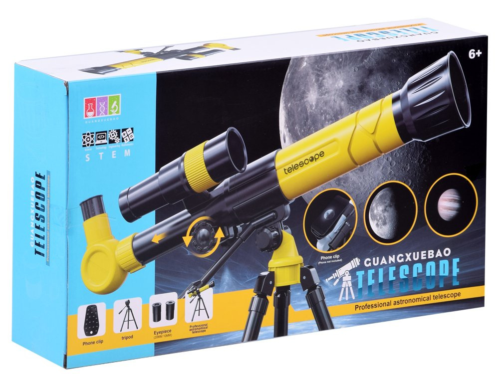 Dalekohled a stativ jsou vyrobeny z plastu.