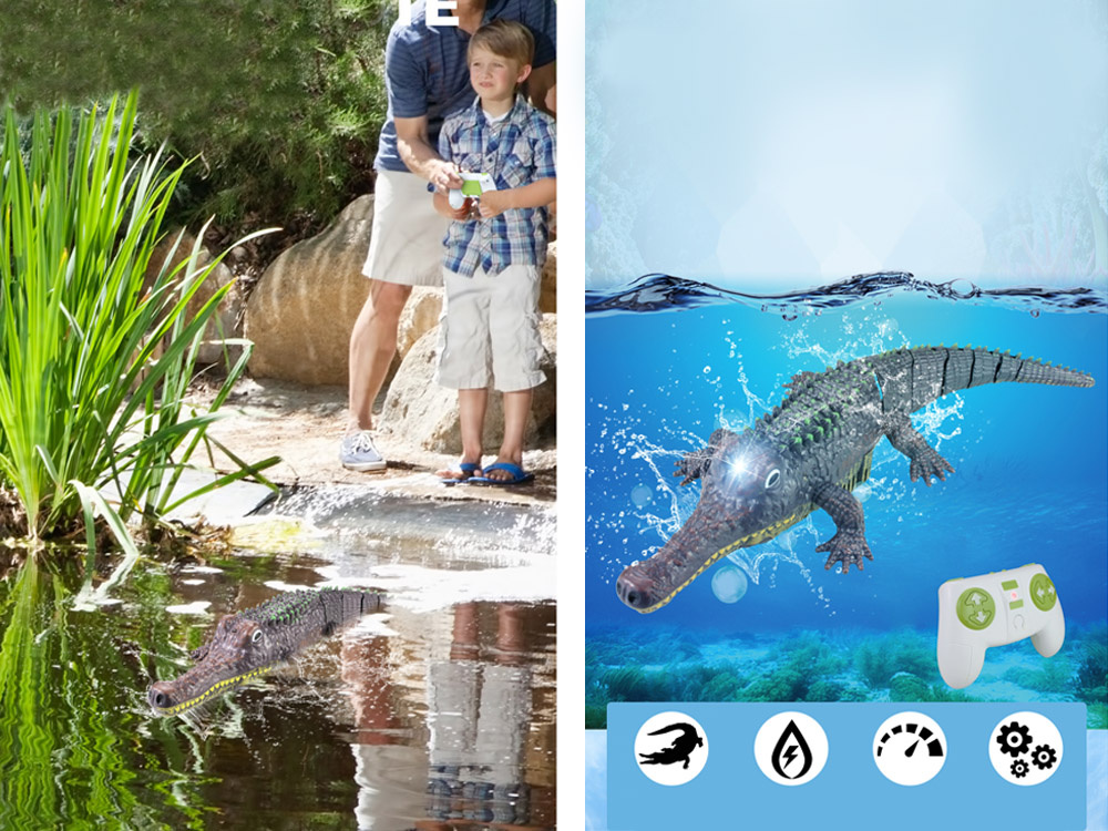 Hračky na dálkové ovládání jsou pro děti i rodiče zábavou, díky této hračce budete moci provádět mnoho lumpáren při hře ve vodě, u jezera, v bazénu. Krokodýl na dálkové ovládání může být skvělou volbou pro děti, které mají rády zvířata a chtějí si hrát na předstírané výpravy divokou džunglí nebo hledat poklad v neznámých vodách.