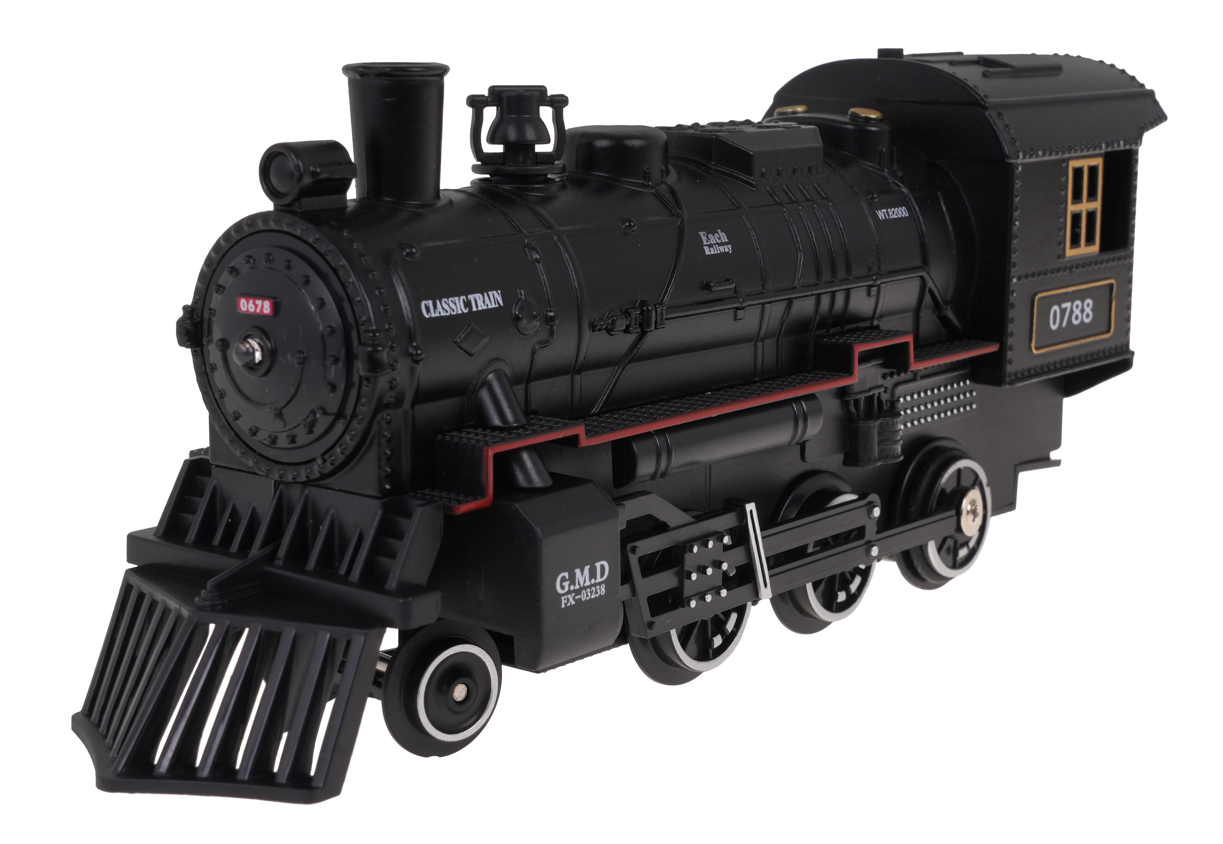 | Kovová retro vlaková souprava na dálkové ovládání s funkcí kouře, zvuky jízdy a kolejemi v balení je vhodná pro děti od 5 let. Vláček je napájen dobíjecí baterií typu 3,7 V (je součástí dodávky), dálkové ovládání bateriemi typu 2 x AA 1,5 V (nejsou součástí dodávky). Trasa železnice má tvar elipsy o rozměrech cca. 181 cm x 78 cm. Za jízdy lokomotiva vypouští kouř z komína (po doplnění vody - včetně vodní pipety) a navíc svítí světlo umístěné v přední části. Dráhy se snadno spojují, takže jsou bezpečné a robustní. Pomocí dálkového ovládání můžeme ovládat jízdu vlaku vpřed, vzad, rychlost, zvukové signály a parní funkce. Vlastnosti sady: - železnice z kovu, - dálkově ovládaný vlak, - dálkové ovládání 2,4 GHz, - jízda vpřed a vzad, - regulace rychlosti, - kouř vycházející z komína, - světlomet na přední části lokomotivy, - zvuky při jízdě. | |