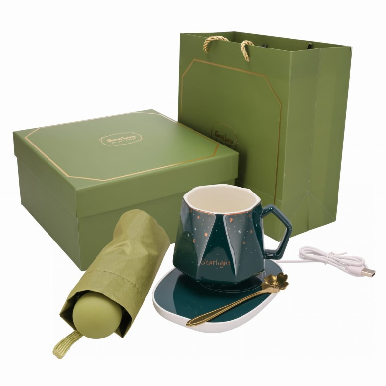 Keramický hrnek s elegantní lžičkou - Ideální duet pro milovníky stylových nápojů. Pociťte výjimečný komfort při pití oblíbeného nápoje! Ten solidní, krásně provedený hrnek je kvintesencí elegance a funkčnosti. V sadě s ladící, stylovou lžičkou tvoří dokonalý komplet. Skládací turistický deštník - Lehký, praktický a spolehlivý – nelze si ho neoblíbit. Vejde se do kabelky nebo batohu a zároveň ochrání před nečekaným deštěm (nebo sluncem!).). Ohřívač na hrnek - Už nikdy více studená káva!Tento chytrý gadget zajistí, že váš oblíbený nápoj zůstane dokonale teplý po dlouhou dobu. Dokonalý do práce, na stůl, do domácího koutku relaxace nebo dokonce na cestu. Nezbytný pro ty, kteří si cení pohodlí a komfortu.