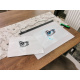 Umístěte výkres, který chcete kopírovat, na tabuli a pak na něj položte prázdný list papíru. Pro jistotu můžete obě karty připevnit k desce pomocí klipu (není součástí balení). Zapněte podsvícení a nastavte ho podle tloušťky karet. Nyní můžete původní návrh snadno překreslit.
