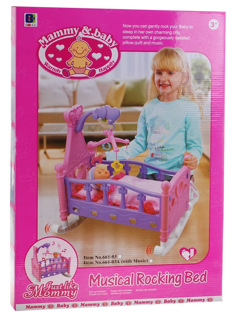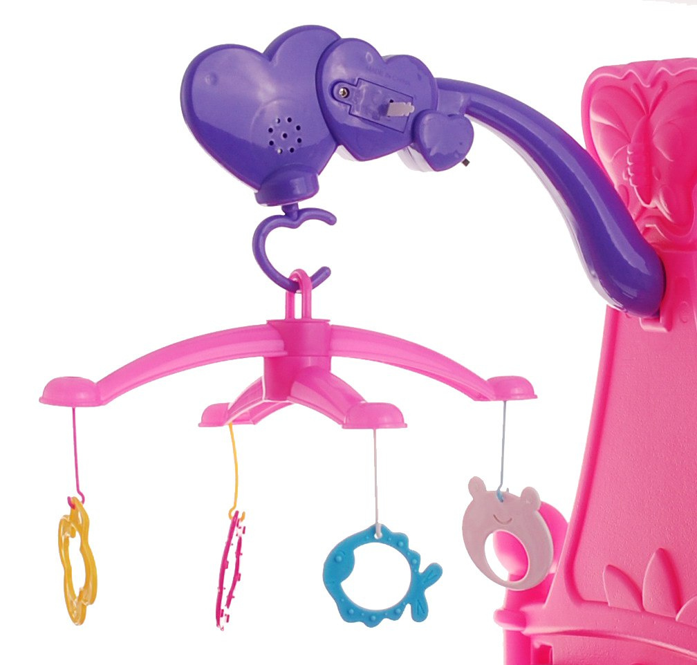 Fantastická, skvěle vybavená postýlka s barevným kolotočem se zvukovými efekty je volbou pro jakoukoli panenku do cca. 50 cm.