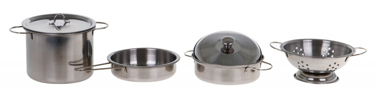 Vysoce kvalitní sada hrnců z nerezové oceli. Vzhledově se podobá skutečnému kuchyňskému vybavení, jen v miniaturním provedení. Sada je určena pro děti od tří let. Určitě se bude líbit každému malému kuchaři nebo kuchařce.