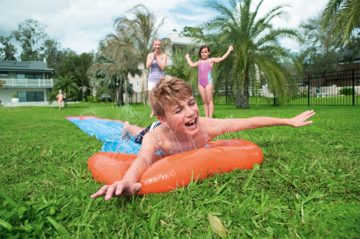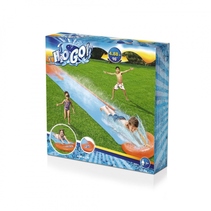 | * Není potřeba žádné náčiní. Připojte adaptér k zahradní hadici a jezděte! * 4.skluzavka dlouhá 88 metrů je ideální pro individuální rychlostní zkoušky nebo pro střídání s přáteli * Voda teče do bazénu a na konci skluzavky se pořádně rozstříkne * Zabudované postřikovače poskytují kaskádový efekt a udržují povrch dráhy kluzký | |