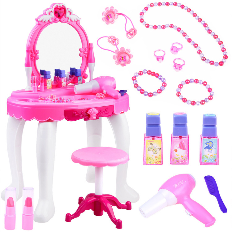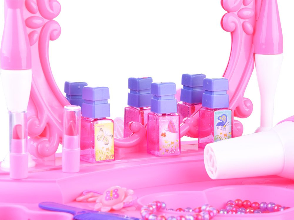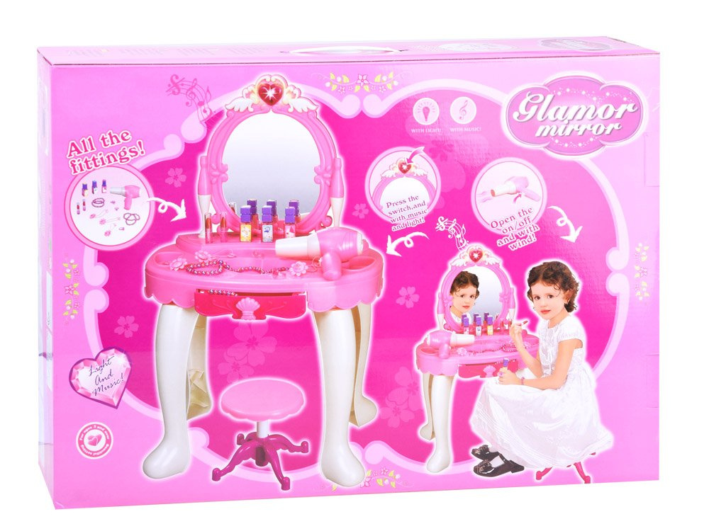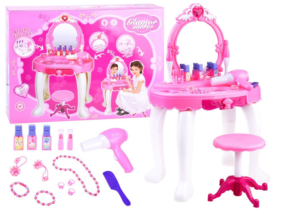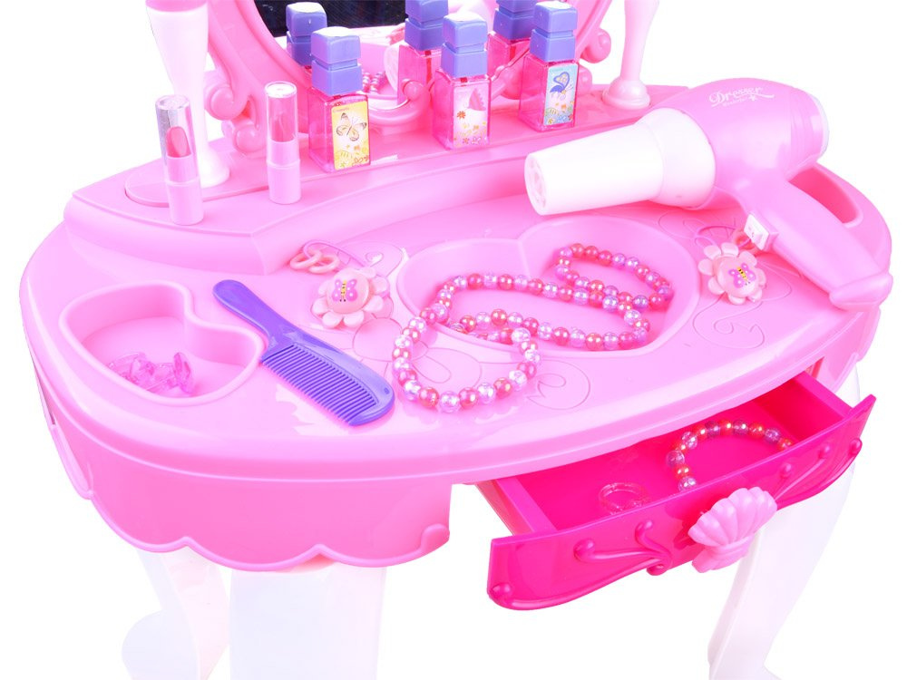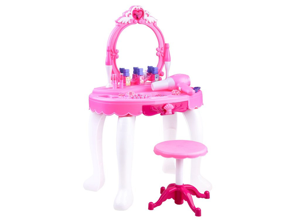 Bezpečné zrcadlo umožní každé šatné dívce vylepšit si make-up, účes. Součástí toaletního stolku je židle přizpůsobená velikosti toaletního stolku. Otevírací zásuvka toaletního stolku vám umožní ukládat kosmetické potřeby.
