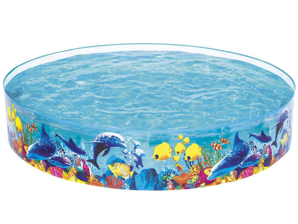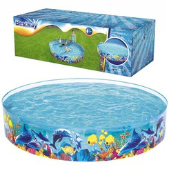 Klasický expanzní bazén Bestway je skvělou volbou pro horké letní dny. Stěny dětského brouzdaliště jsou vyrobeny z pevného a silného PVC, které se pod tlakem vody rozpíná. Dno je trvale připevněno a vyrobeno z odolného vinylu. Průhledné stěny plastového zahradního brouzdaliště se zajímavou grafikou barevného korálového útesu vytvářejí úžasný vizuální efekt a děti jistě zaujmou.