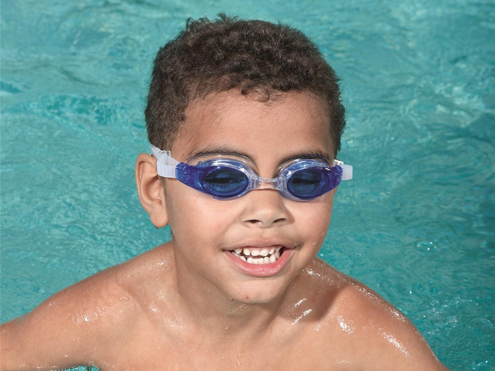 Modré plavecké brýle, potápěčské brýle pro batolata od společnosti Bestway, se dobře hodí pro první lekce plavání.