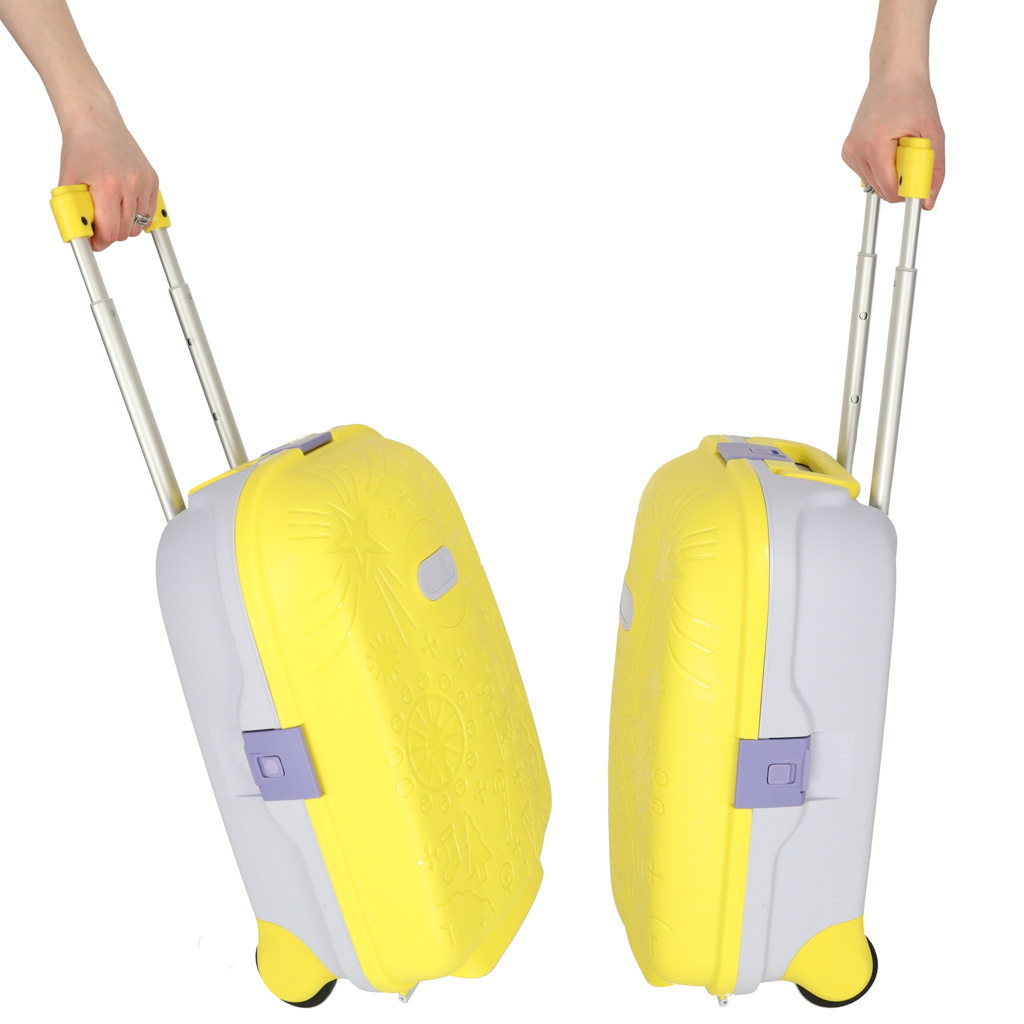 Vlastní kufr je ideální pro každého malého cestovatele připraveného na nová dobrodružství! Žlutá barva a zajímavé vzory upoutají pozornost vašeho dítěte a možná ho i povzbudí, aby si sbalilo svůj vlastní. Součástí sady jsou také samolepky na podepsání zavazadla.