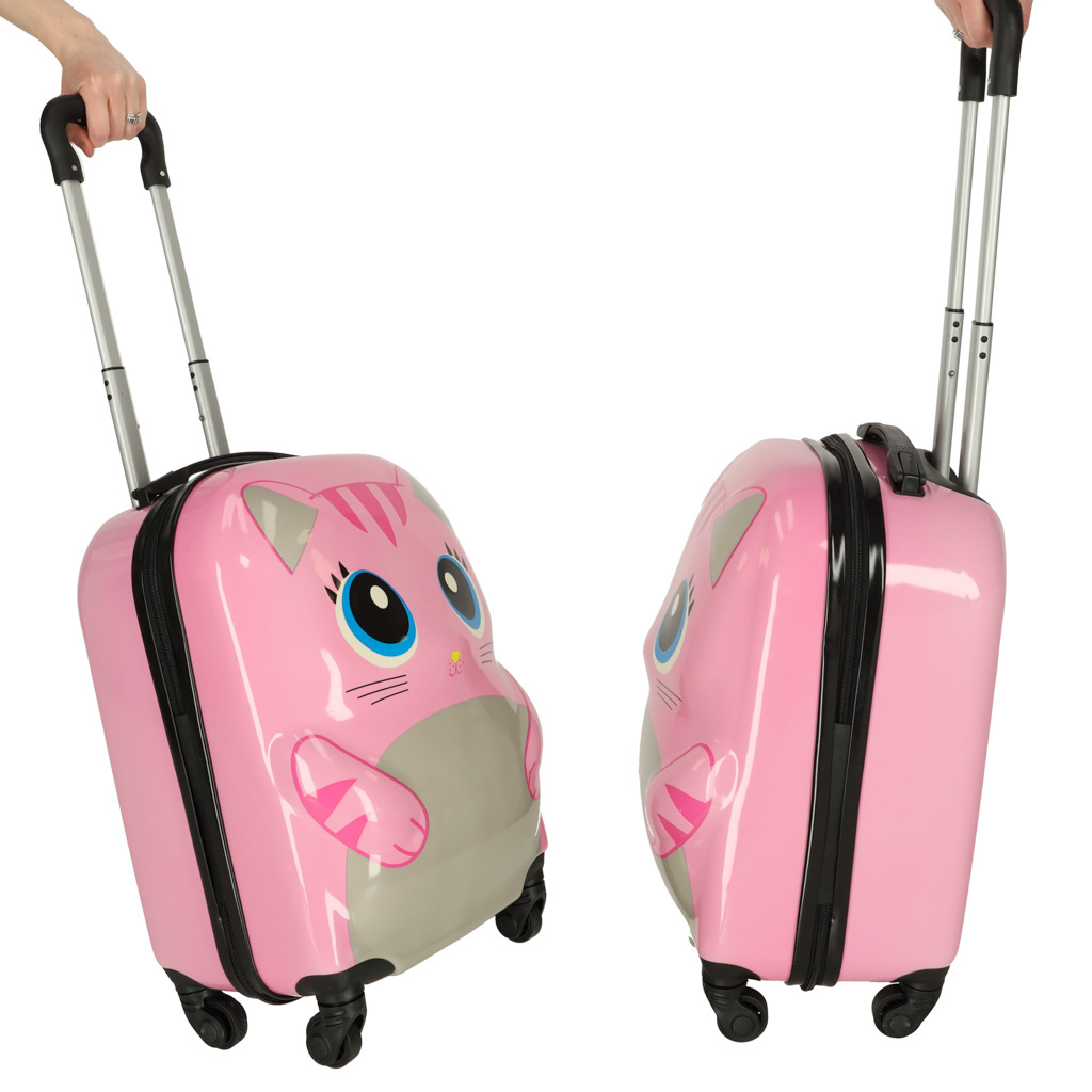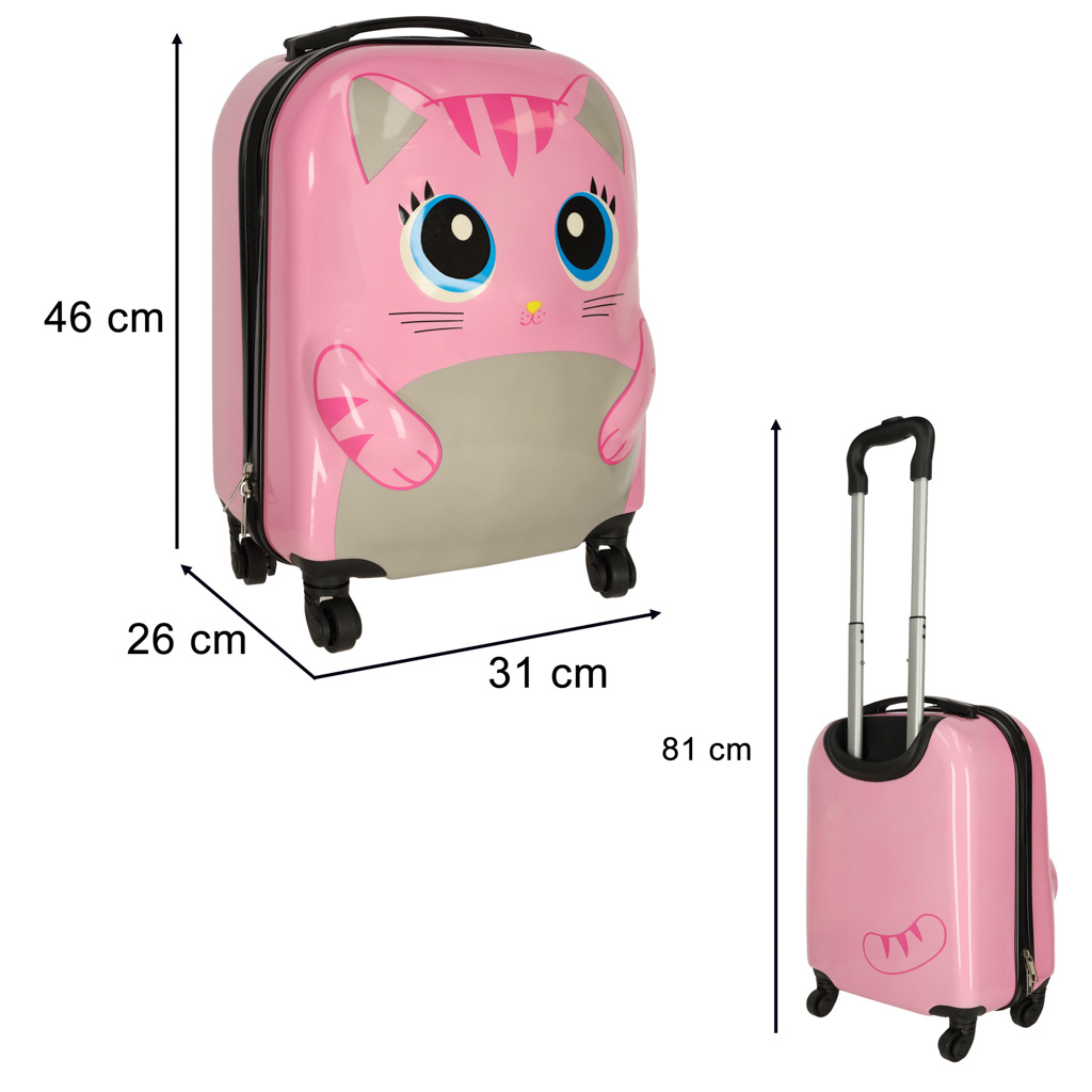 DĚTSKÝ CESTOVNÍ KUFR PŘÍRUČNÍ ZAVAZADLO NA KOLEČKÁCH KOČKA RŮŽOVÁ