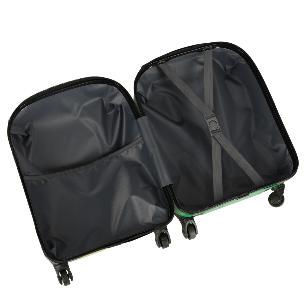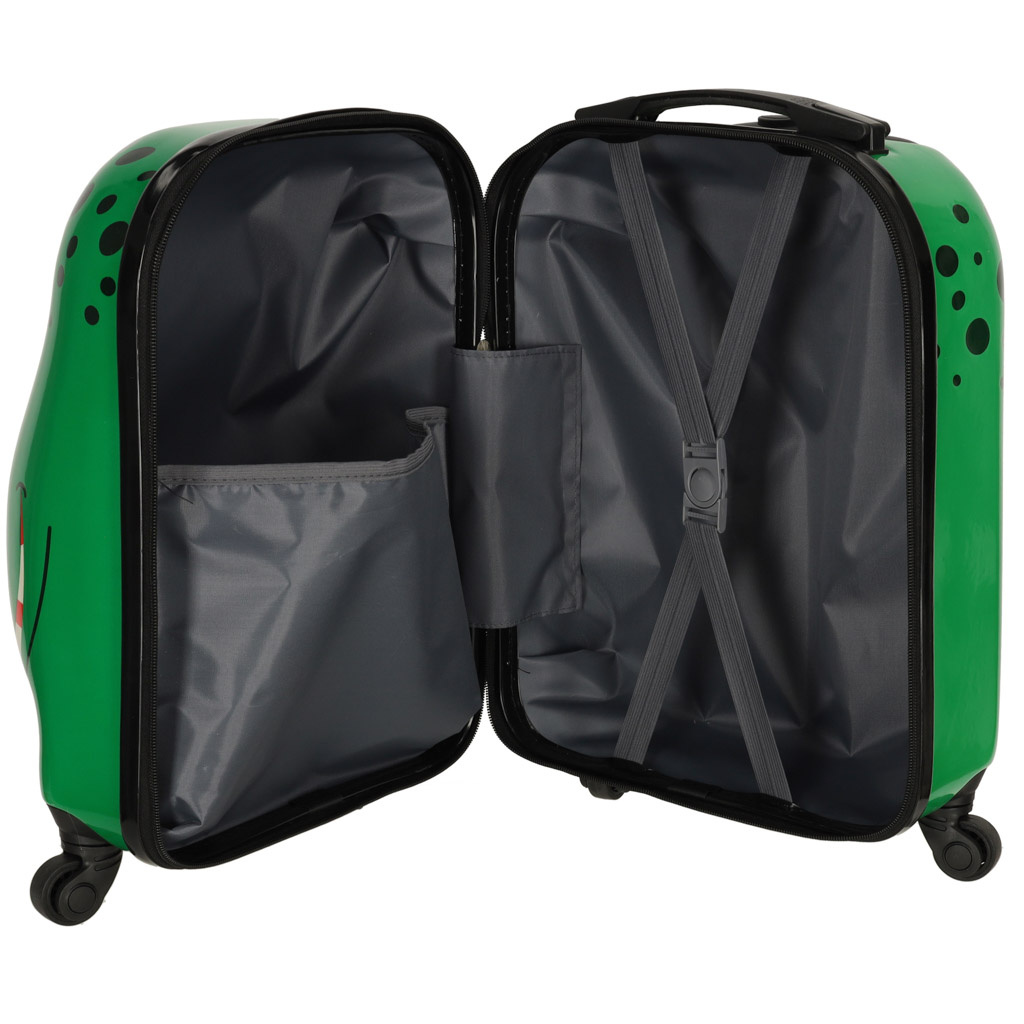 Kufr snadno pojme nejen oblečení na několik dní, ale také oblíbené hračky vašeho dítěte, a to díky dvěma přihrádkám - jedné s kapsou a druhé s bezpečnostními popruhy. Dítě nebude mít problémy s vedením zavazadla, protože je vybavenočtyřmi kolečky a teleskopickou rukojetí.