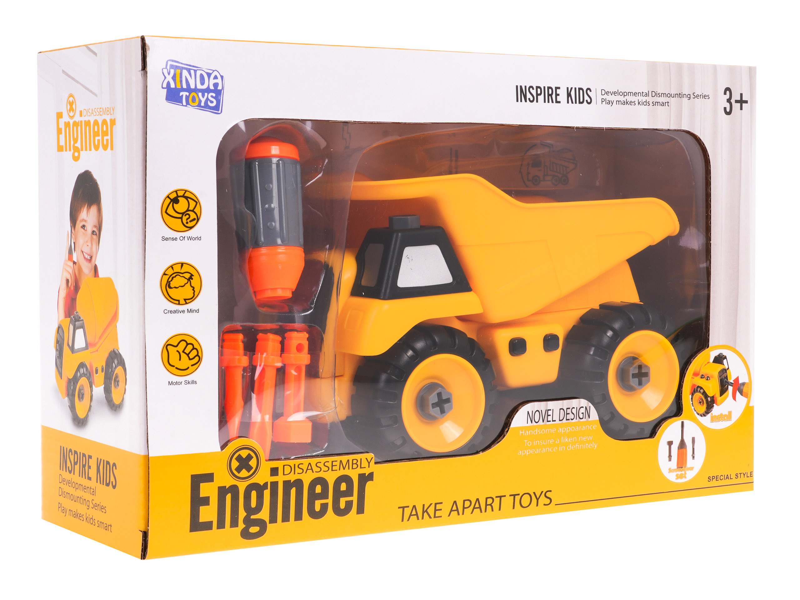 Sada, torzní vozidlo se šroubovákem, je určena pro malé stavitele od 3 let. Vaše dítě může vozidlo rozebrat a znovu složit. Součástí balení je šroubovák s vyměnitelnými nástrčkami. Sklápěč má zvedací a spouštěcí kipper.