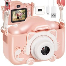 RŮŽOVÁ FULL HD KAMERA PRO DĚTI + 32GB KARTA + CAT OVER + VESTAVĚNÉ HRY + SELFIE KAMERA