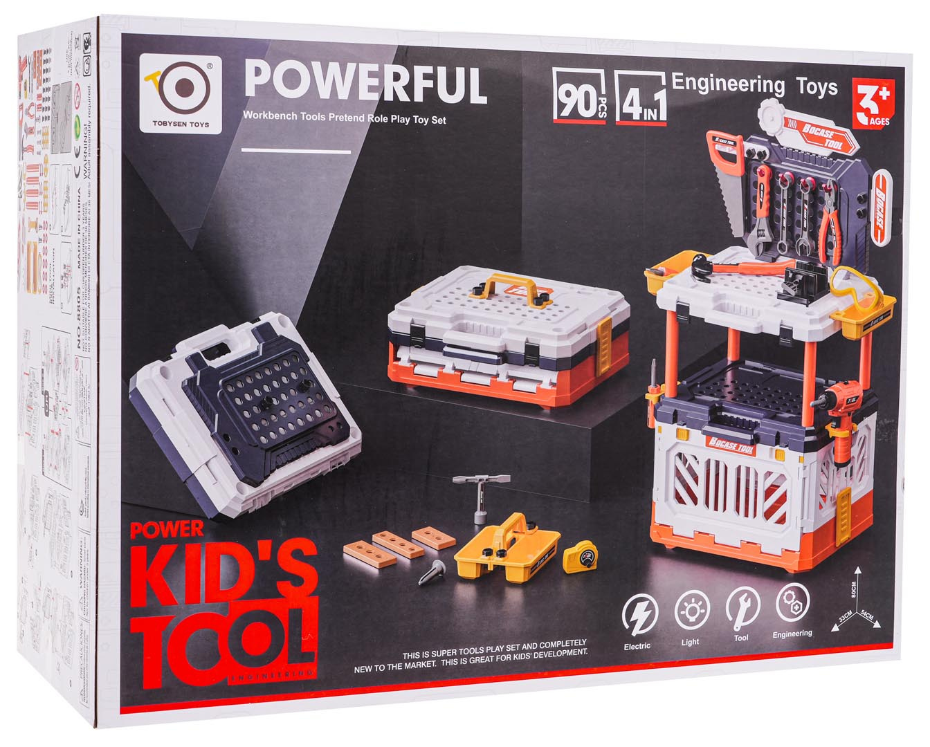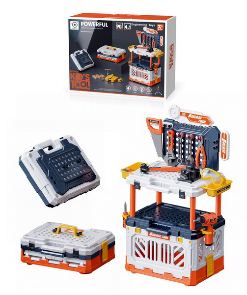 Tato dobře vybavená dílenská sada pro děti od 3 let je perfektní hračkou pro malé kutilské nadšence. Sada obsahuje 90 dílků , které vám umožní postavit bednu na nářadí , přenosný kufr , pracovní stůl a malý stolek na nářadí .