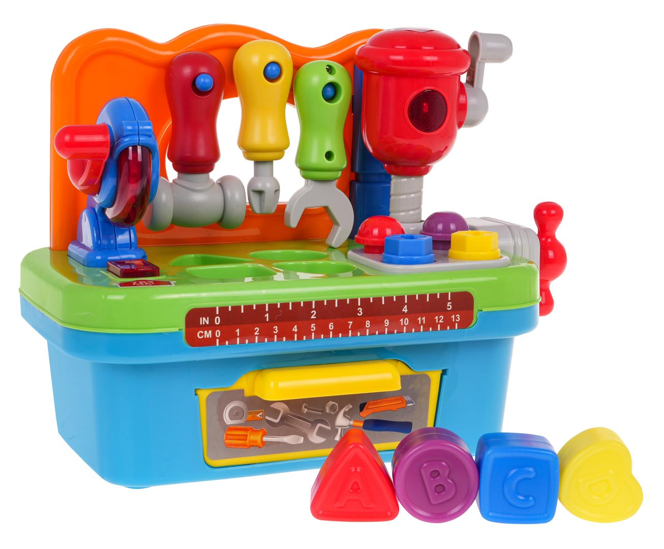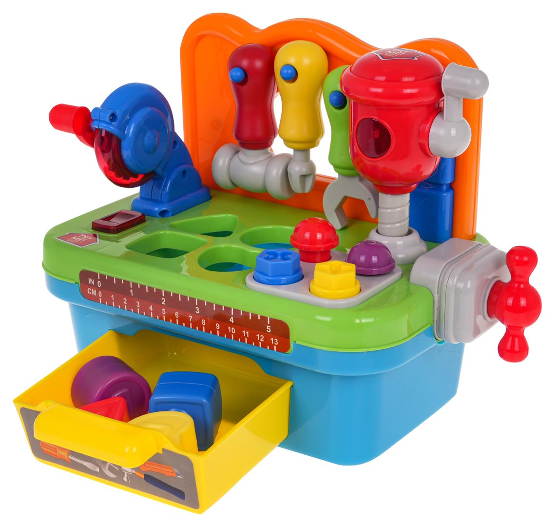 Tato interaktivní dílna nejen baví, ale také podporuje rozvoj dítěte. Hra s nástroji pomáhá zlepšovat jemnou motoriku, podporuje koordinaci a stimuluje smyslový rozvoj. Třídič tvarů a barev stimuluje logické myšlení, zatímco zvukové a světelné efekty děti uvádějí do světa techniky a mechaniky.
