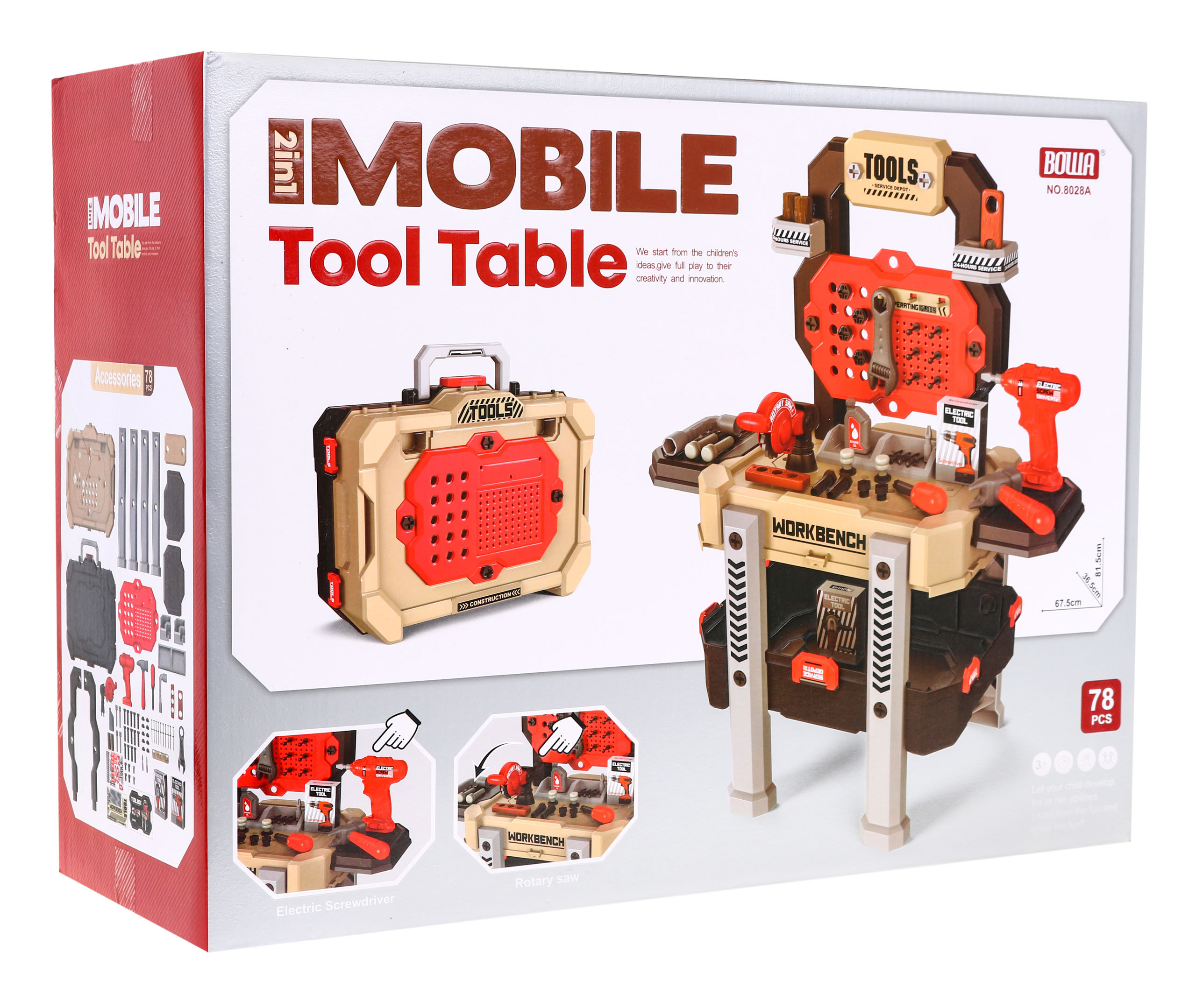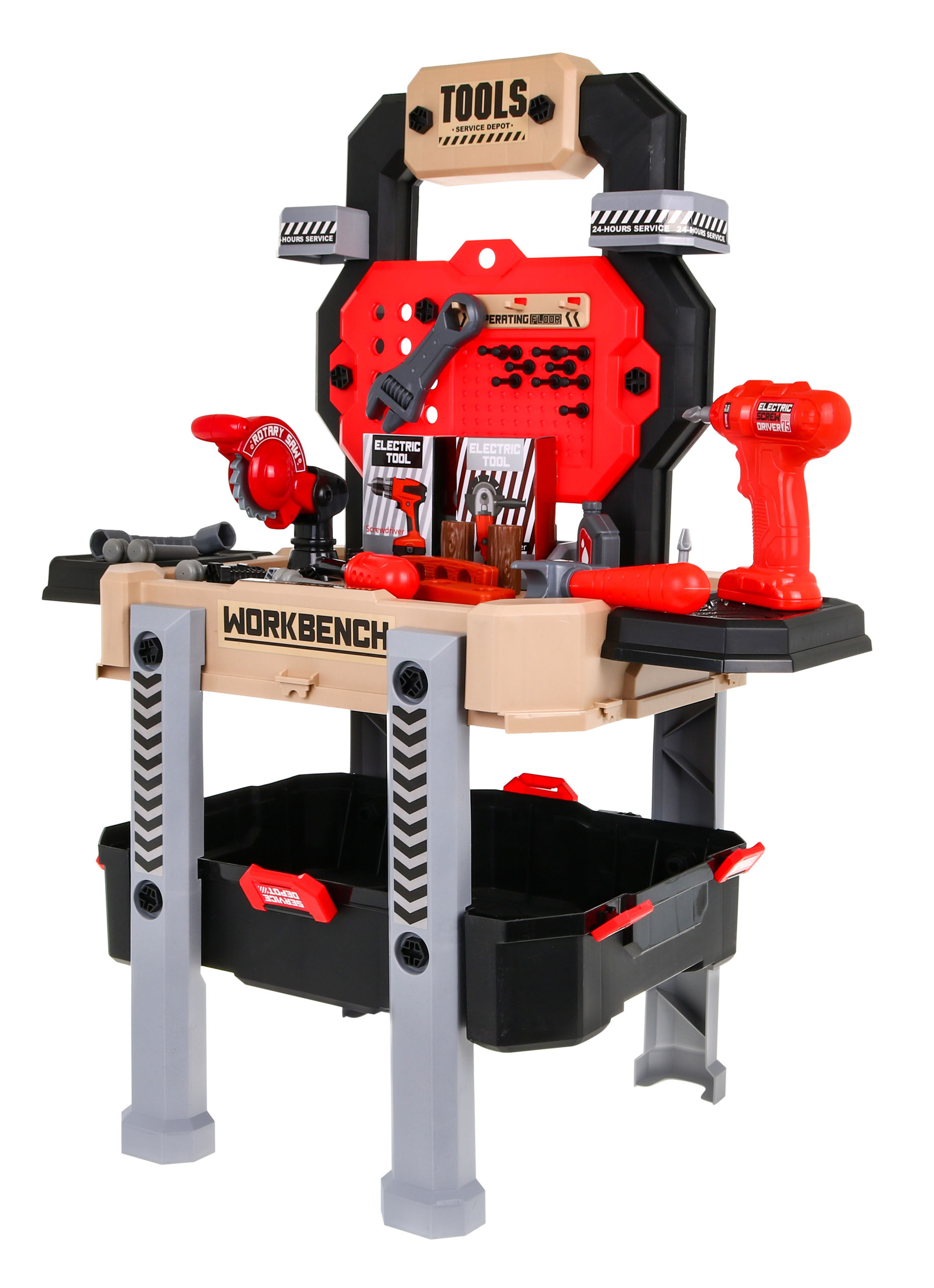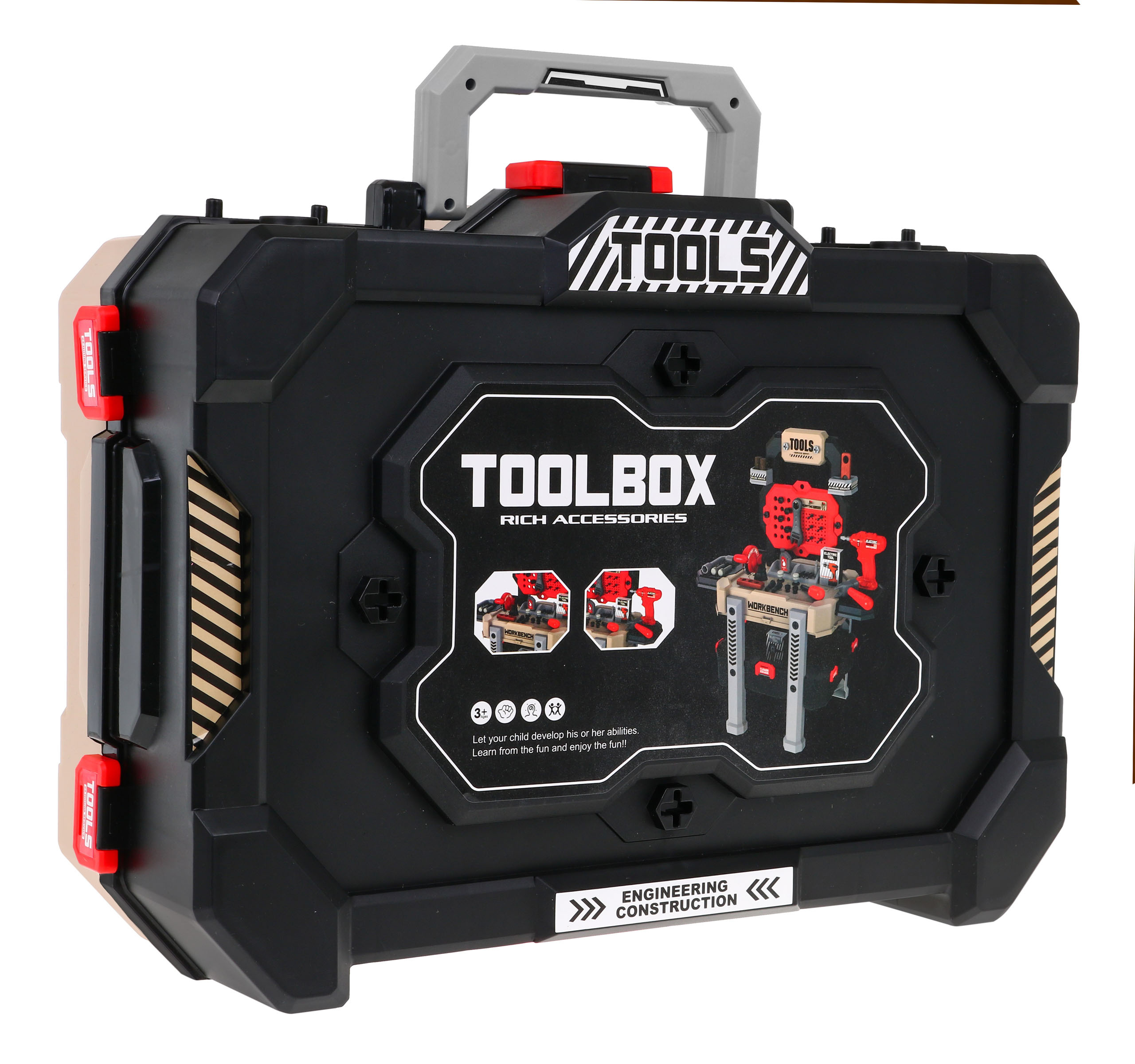 Dobře vybavená dílna s interaktivní vrtačkou, pilou a příslušenstvím je vhodná pro děti od 3 let. Sada se skládá ze 78 dílků, které jsou klamně podobné skutečným nástrojům. Vrtací šroubovák vydává zvuky šroubování a vyšroubování a má dva vyměnitelné bity. Jednotlivé nástroje lze na praktickém stojanu libovolně rozmístit. Po skončení hraní lze všechny dílky uložit do velkého kufříku na nářadí s praktickým držadlem pro přenášení. Hračka je napájena 2 bateriemi AA (nejsou součástí balení).