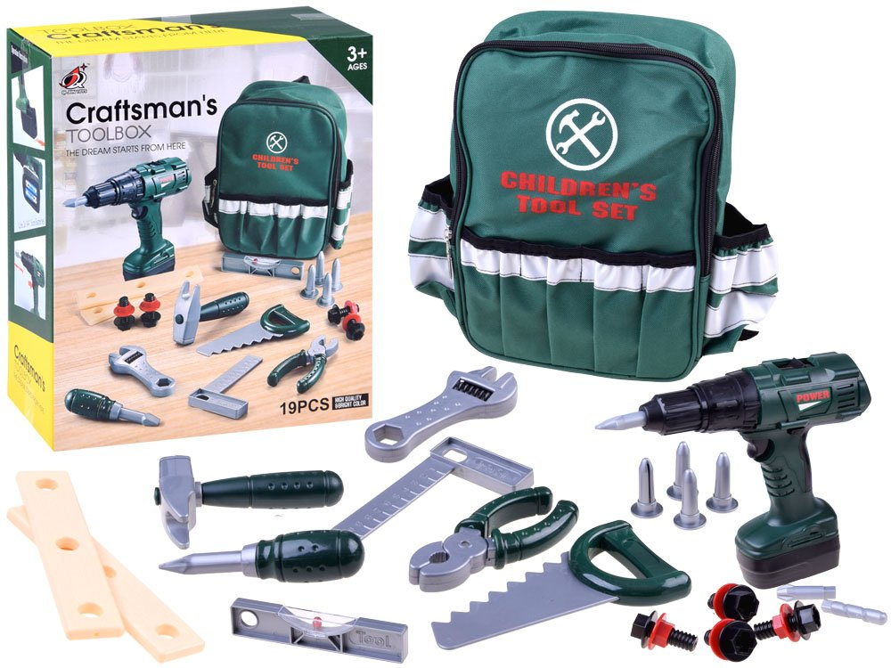 Sada batohu Little DIY je skvělou volbou pro děti, které si rády hrají s nářadím. Je robustní a vyrobený s důrazem na detail. Bity ve vrtačce lze vyměnit a po nasazení baterií (2xAA) lze zašroubovat přiložené šrouby. Je slyšet i zvuk vrtání. Batoh je pohodlný, zapíná se na zip, má spoustu vnějších kapes na drobnosti a nářadí a nastavitelné popruhy zajišťují správné nošení. Sada je vybavena veškerým potřebným nářadím, a když si dohrajete, můžete si vše sbalit do batohu, prvky se neztratí a není v nich nepořádek:)