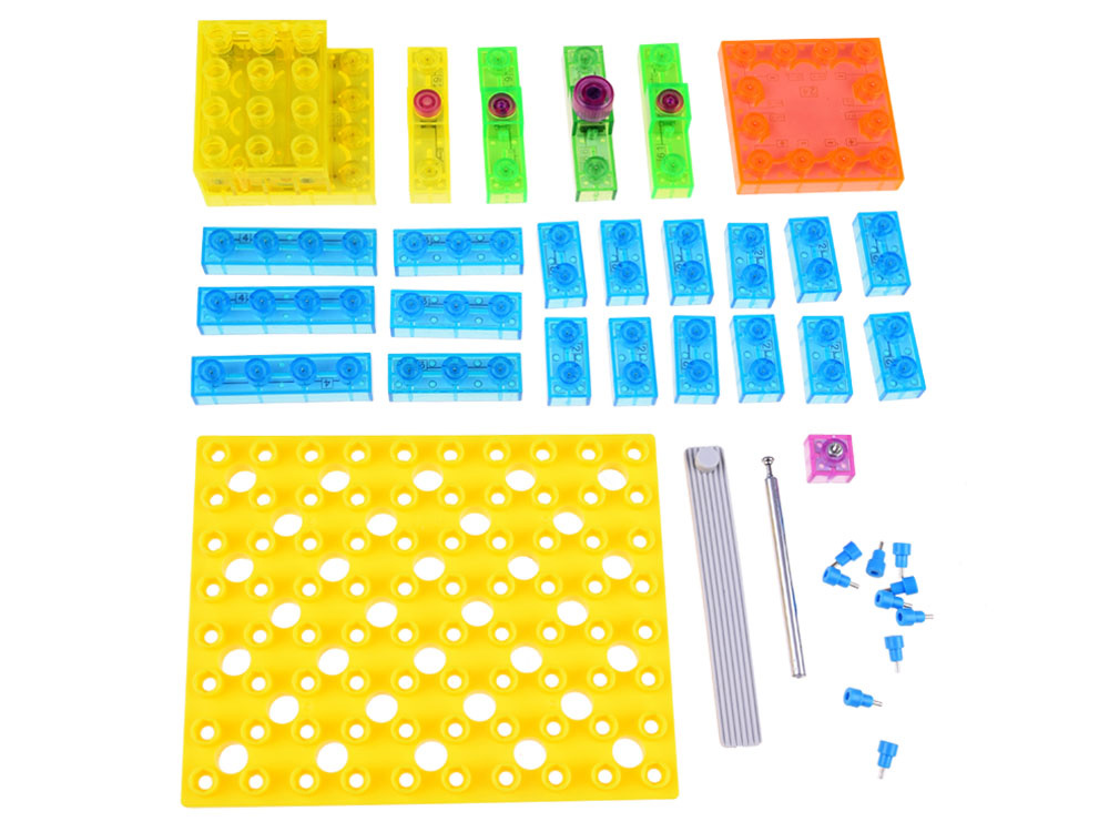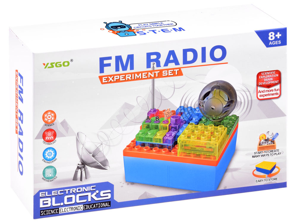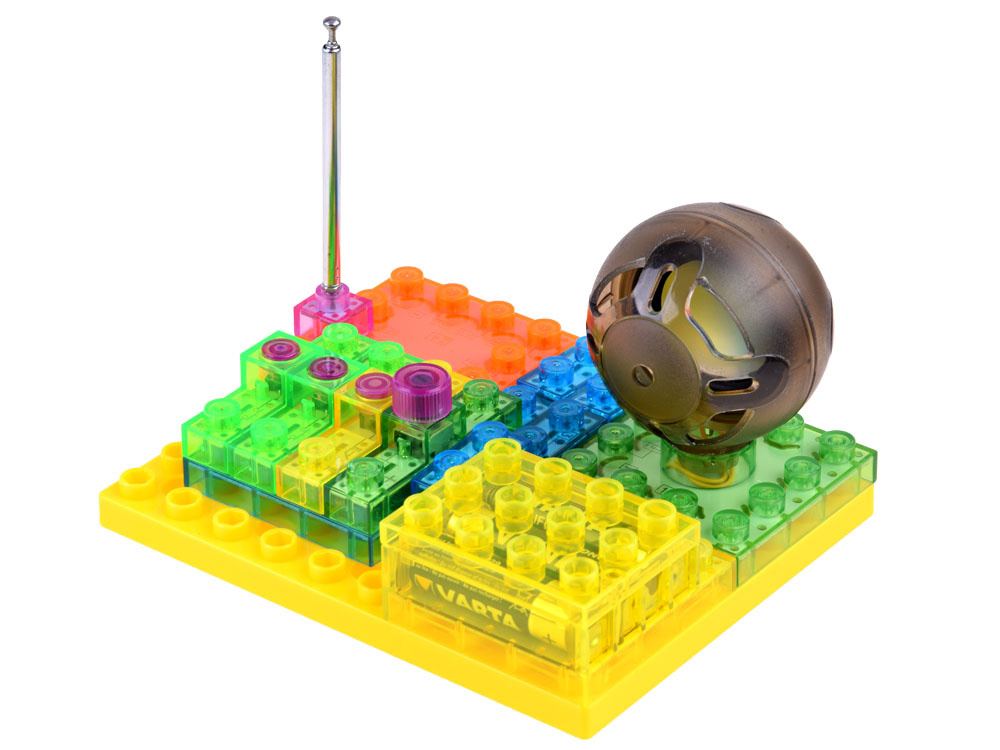 Vzdělávací stavebnice pro stavbu vlastního rádia. Sada plastových bloků s obvody vám umožní sestavit dva modely rádií. Jedná se o mega kreativní a vzdělávací sadu pro každého malého elektronika.