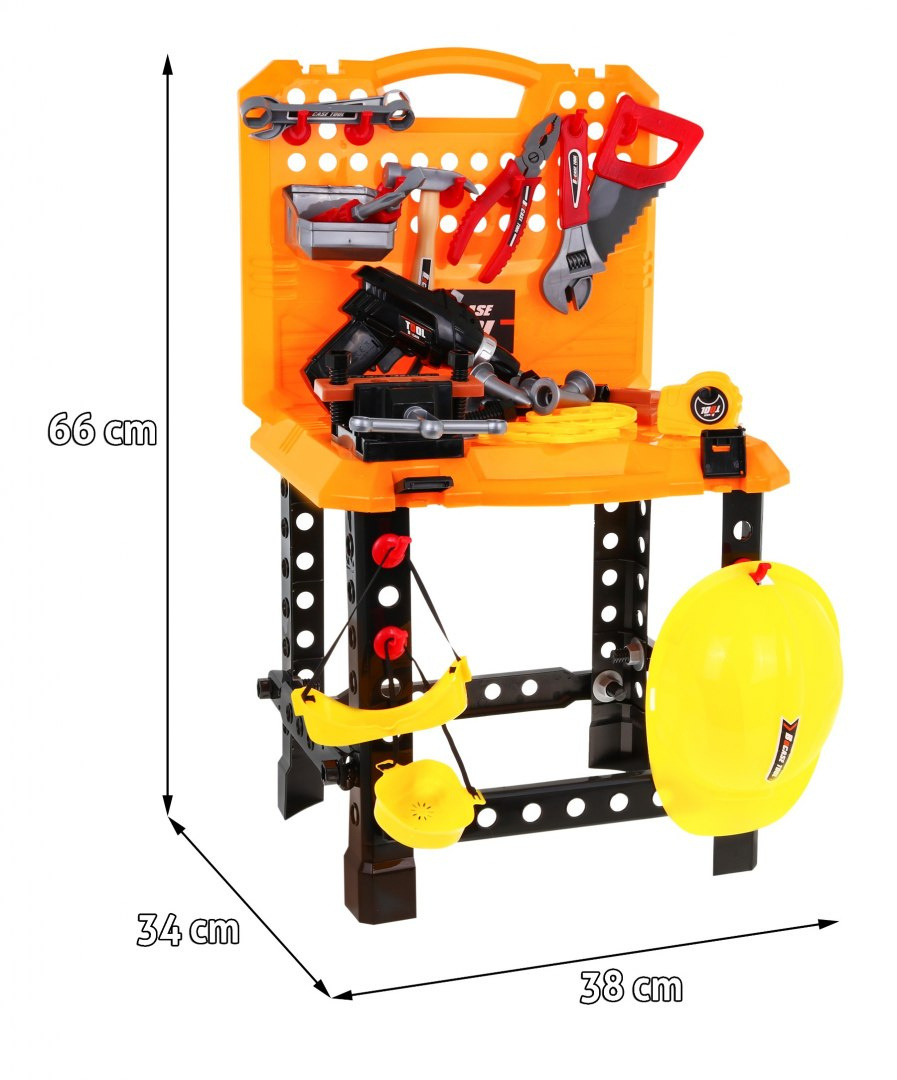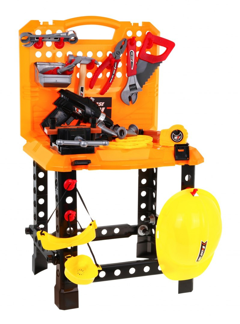 Tato sada nářadí s dílnou a kufříkem je skutečnou lahůdkou pro každého malého kutila. V této sadě je 100 dílků. Hračka je vhodná pro děti od 3 let, napájí se 2 x AA bateriemi (šroubovací) - nejsou součástí balení.