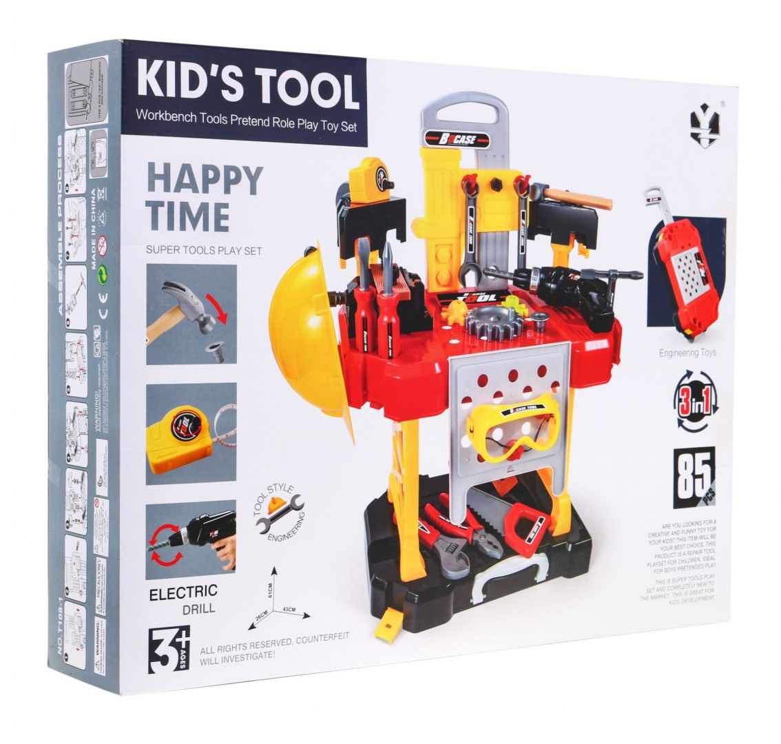 Sada nářadí s dílnou a kufříkem na nářadí je hračka, která se bude líbit každému malému kutilovi. V této sadě je 85 dílků. Hračka je vhodná pro děti od 3 let, napájí se 2 x AA bateriemi (šroubovací) - nejsou součástí balení.