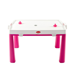 Stůl je navíc dodáván s hrací plochou pro air hockey, kterou lze umístit na stůl. S tímto vzdušným hokejem může zábava začít. Překvapte své dítě tímto krásným stolem a zajistěte mu chvíle plné zábavy i pěknou dekoraci do pokoje nebo na zahradu.