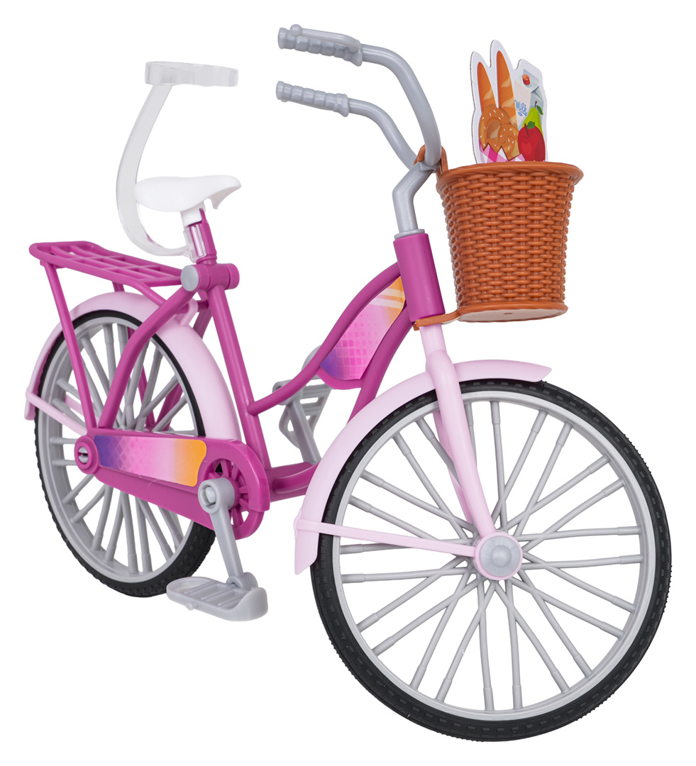 Kolo pro panenky je určeno pro děti od tří let. Hračka byla vyrobena s důrazem na detaily, z nejkvalitnějších materiálů v živých barvách. Krásné růžové kolo má růžový rám, bílé sedlo a šedé akcenty. Vepředu se nachází košík na drobnosti. Kolečka, pedály a volant jsou pohyblivé. Máme také stojánek na postavení kola. K sadě byla také přiložena kšiltovka pro panenku.