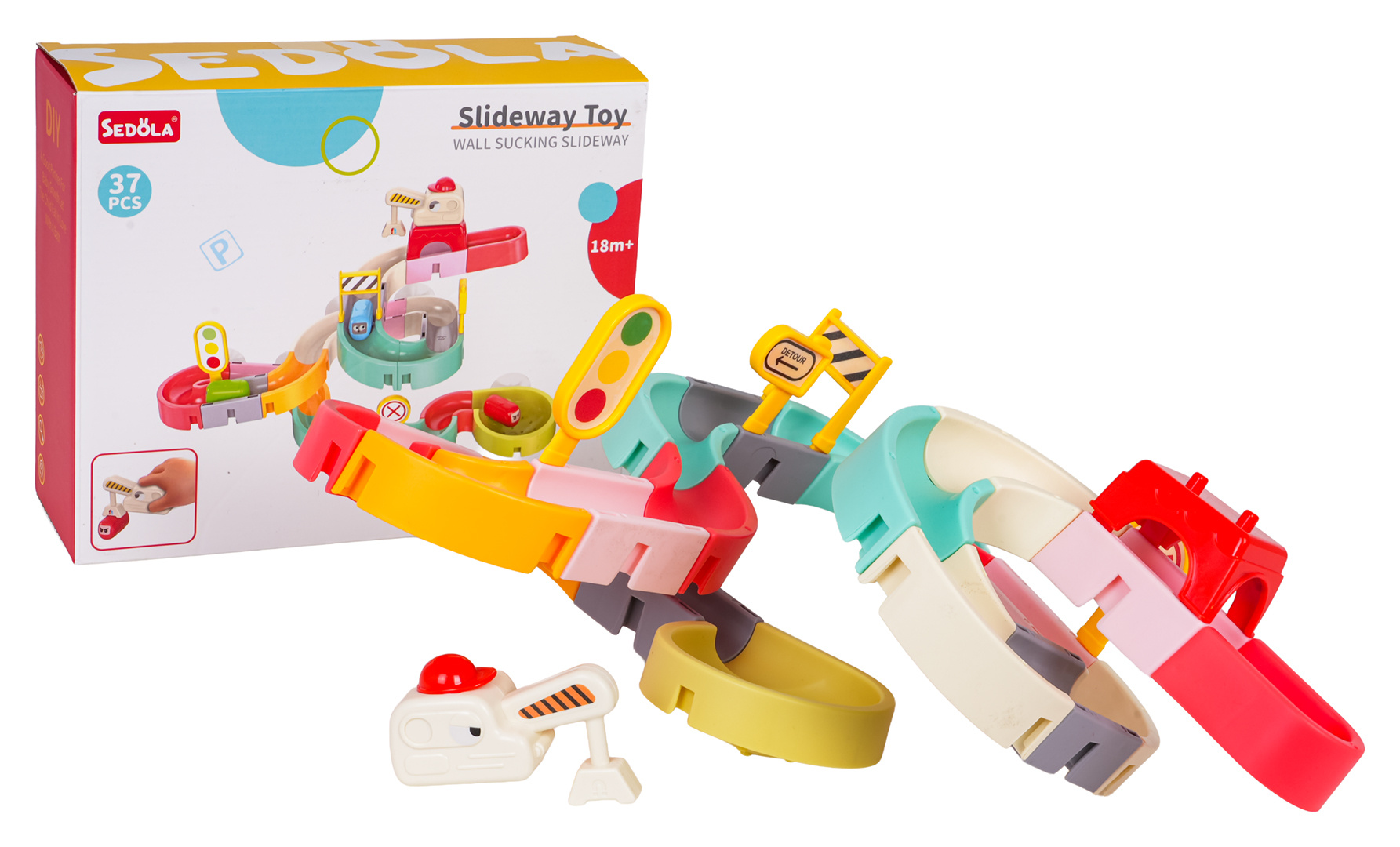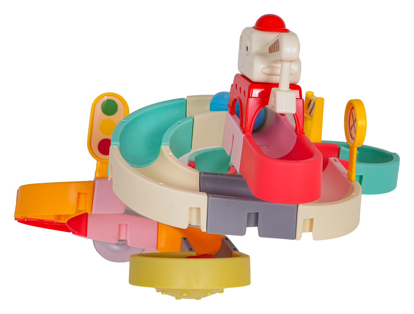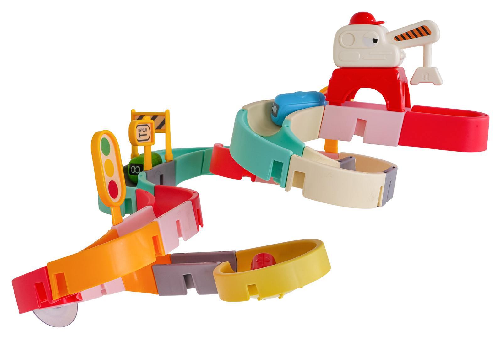 Dráha, skluzavka pro autobusy, pro koupání dětí od osmnáctého měsíce života. Barevná dráha zpříjemní nejednu koupel. Byl vyroben z nejkvalitnějších materiálů, bezpečných pro dítě, v živých barvách. Sada má přísavky, díky kterým ji lze připevnit k vaně nebo jiné rovné ploše. Po umístění autobusů na startovní čáru dráhy je stačí postříkat sprchou a vyrazí po dráze přímo do vody.