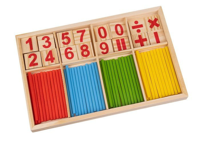 Praktická sada pro osvojení základů matematiky - počítání tyčinek. Dřevěné počítadlo je způsob, jak se dítě začne zajímat o počítání.