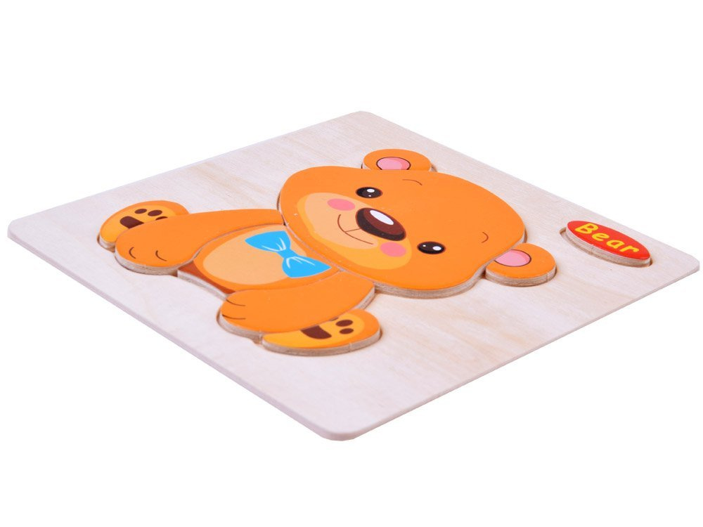 Vzdělávací dřevěné puzzle jsou určeny pro děti od 3 let. Sada znázorňuje zvířátko, stačí jen pomalu skládat tvary k sobě a vznikne rozkošný medvídek. Jedna deska umožňuje uspořádat jedno zvíře.
