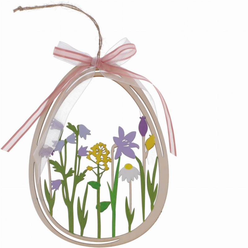 Tato nádherná dřevěná dekorace ve tvaru vajíčka je skvělým způsobem, jak vnést velikonoční atmosféru do vašeho domova. S jemnými květinovými motivy, které zdobí povrch vajíčka, je to ozdoba, která jistě upoutá pozornost a dodá svěžest vašim jarním aranžmá.