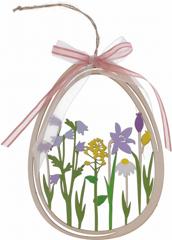 Dřevěné velikonoční vejce s květinami k zavěšení