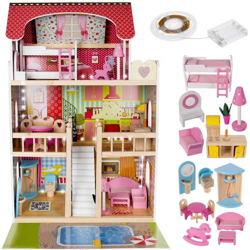 LED Domeček pro panenky s bazénem a příslušenstvím XXL Kruzzel 11251