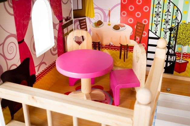 • PROSTORNÝ - dřevěný domeček pro panenky je určen pro 4 člennou rodinu panenek. Má 3 úrovně, které jsou vzájemně propojeny krásnými bílými schody, až 5 pokojů a balkonem. Každá panenka sní o tak velkém domě!