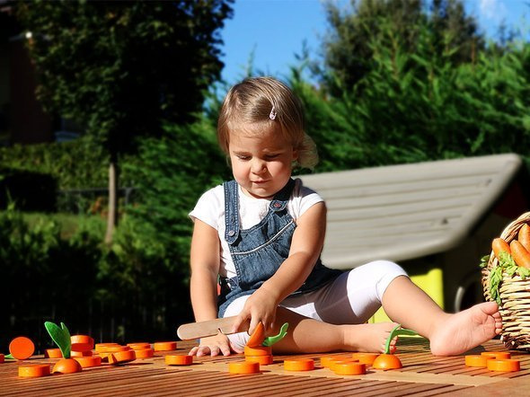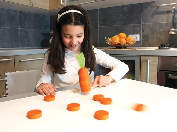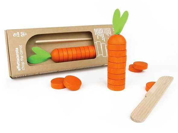 Můžete nakrájet celou mrkev tak, aby se nerozsypala? Nakrájej mrkev je vzdělávací a obratnostní hra, která procvičuje soustředění, rozvíjí manuální a motorické dovednosti dětí. Pomocí dřevěného nože ze sady se hráč snaží vyrazit spodní část mrkve jednou ranou, aniž by se celá rozsypala nebo z ní vypadly další kousky. Zaručeně skvělá zábava pro celou rodinu!