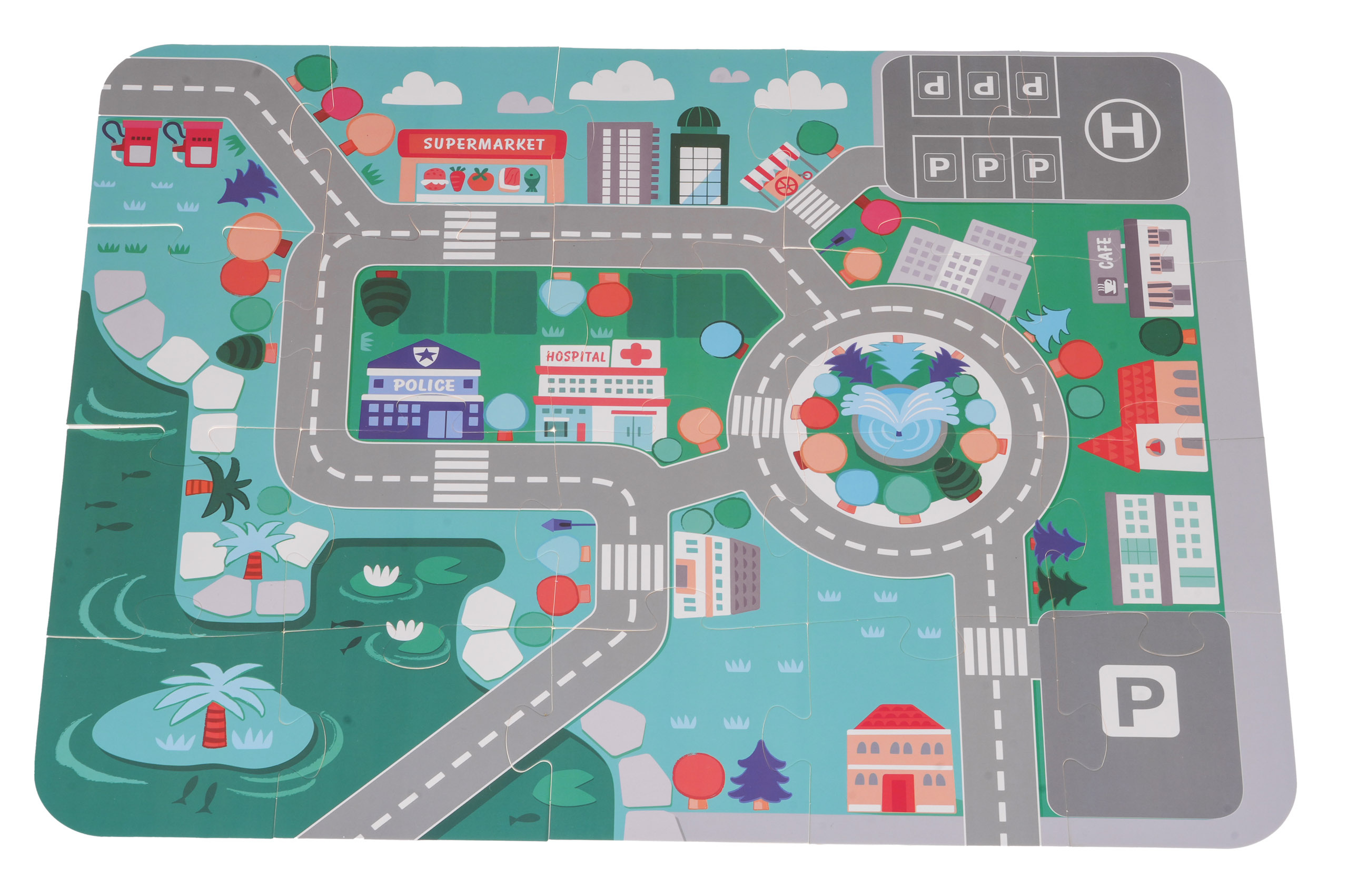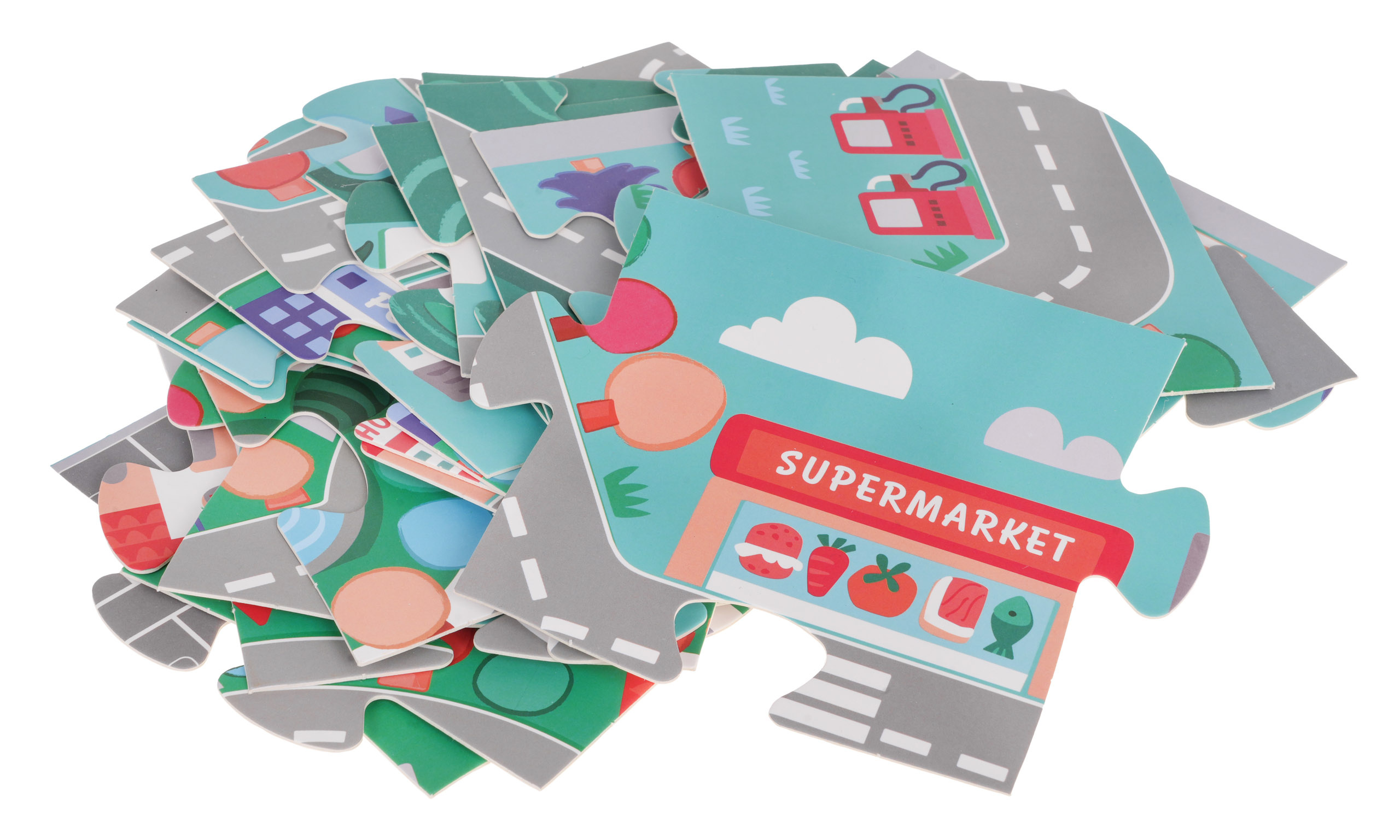- puzzle pod městem cca. 42 cm x 55 cm,