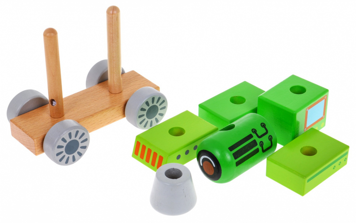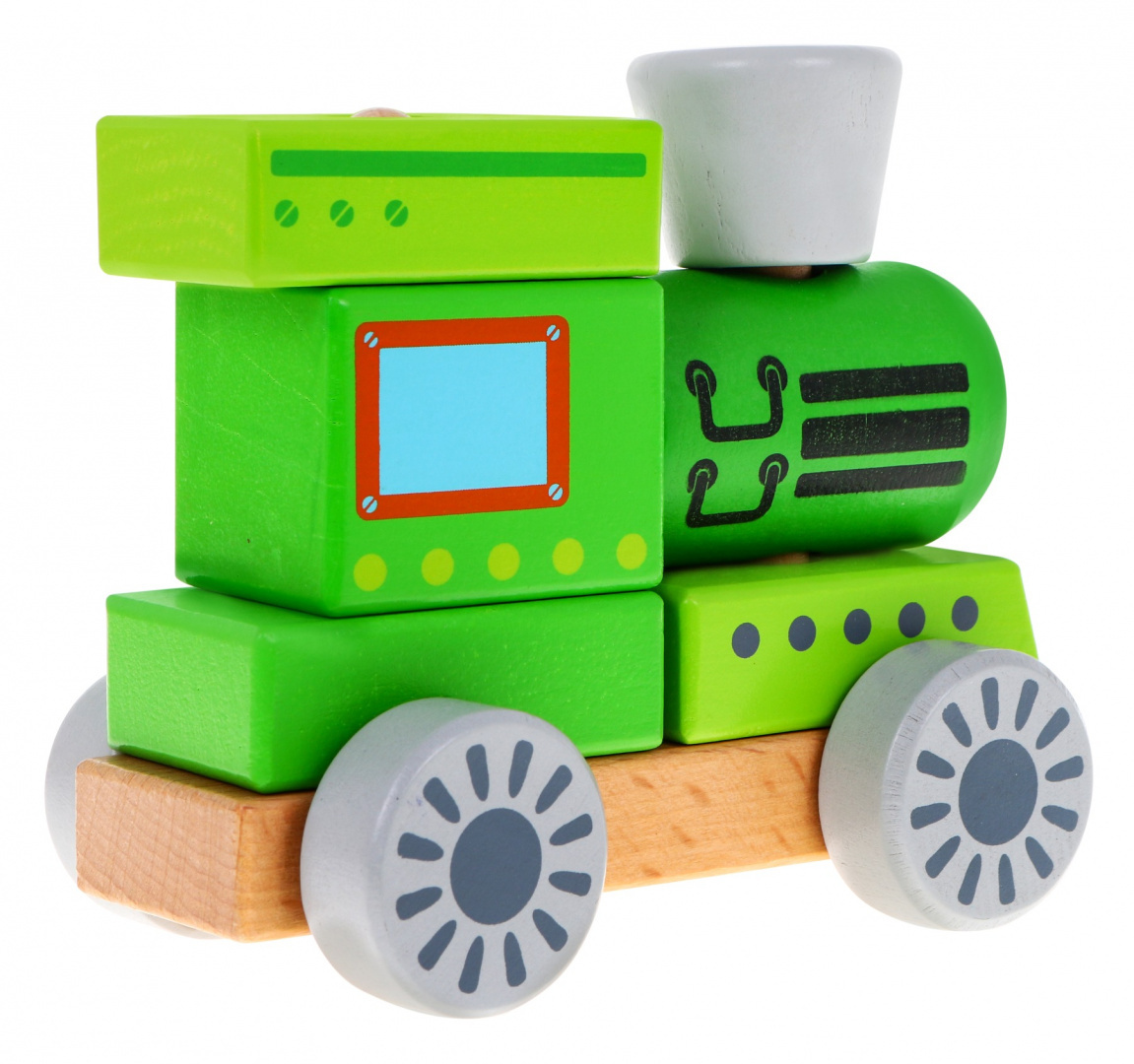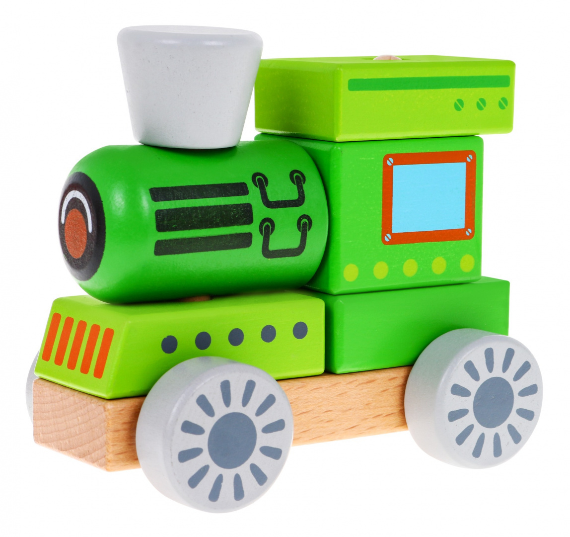 Dřevěný vláček je hračka určená pro kreativní batolata od dvou let. Vlak se skládá ze základny a šesti bloků. K podstavci jsou po stranách připevněny dřevěné pohyblivé kroužky a nahoře 2 kolíky. Dítě položí kostky na hmoždinky a vytvoří vláček. Všechny části hračky jsou vyrobeny ze dřeva a natřeny netoxickými barvami. Prostřednictvím hry dítě podporuje koordinační schopnosti rukou a očí a učí se logickému myšlení.
