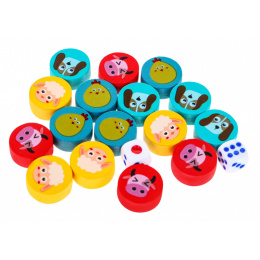 - šachové pěšce nebo hra s hady a žebříkem 8 žlutých a 8 červených,
