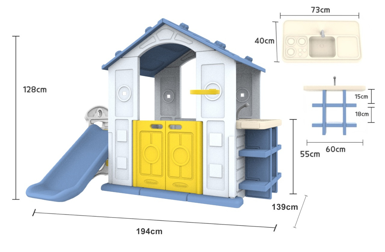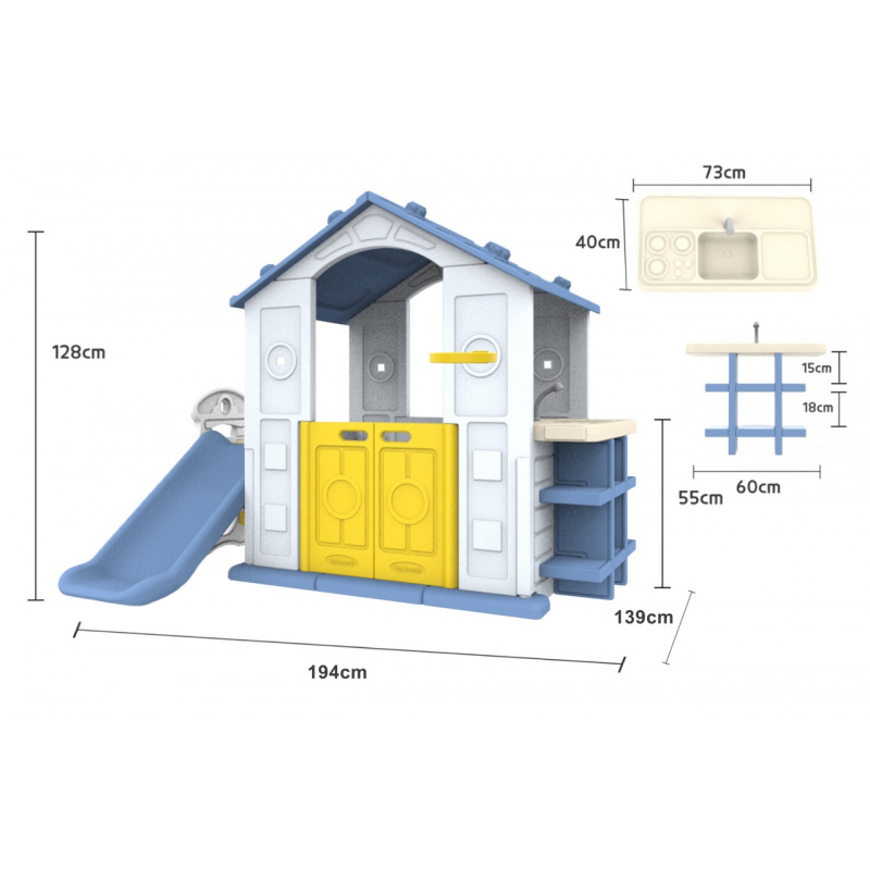 Specifikace | Zahradní domek se skluzavkou, basketbalem a stolkem |