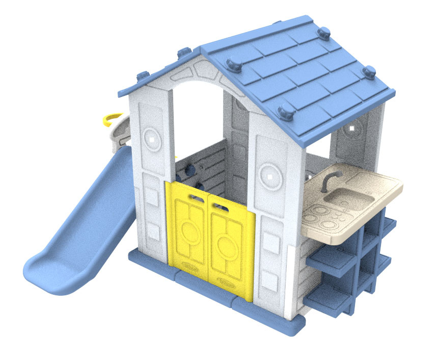 Všechny prvky domku jsou vyrobeny z vysoce kvalitního materiálu HDPE. Jedná se o polyethylen s vysokou hustotou, která se pohybuje od 0,942 do 0,965 g/cm3. HDPE je materiál pružnější a odolnější vůči mechanickému poškození ve srovnání s materiály používanými v jiných konstrukcích tohoto typu. Všechny stěny i součásti jsou vyrobeny z dvojité vrstvy plastu. Poskytuje to navíc možnost vyplnění stěn výplní jako je písek nebo drť, což zajišťuje stabilitu konstrukce. Velké komponenty usnadňují montáž. | |