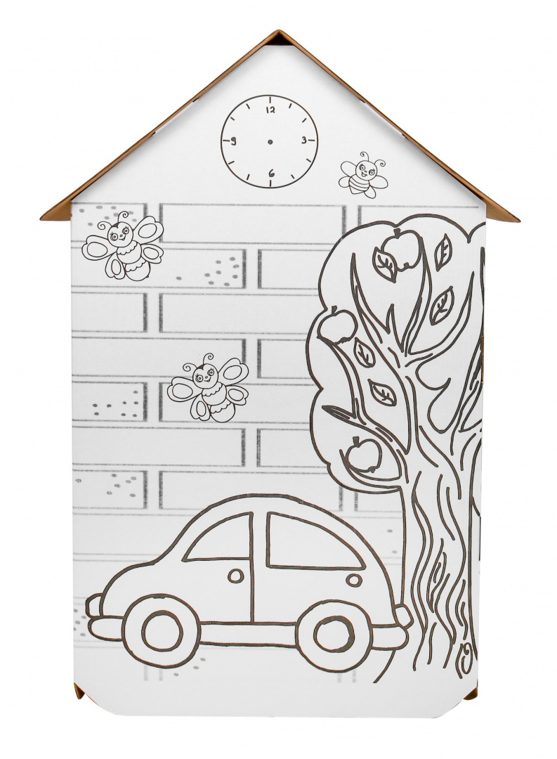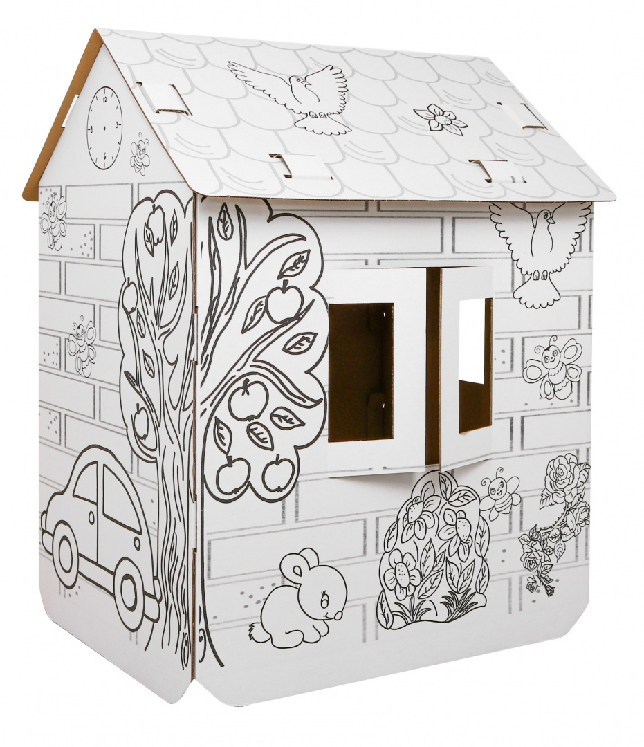 Kartonový domeček je vhodný pro děti od 3 let. Hračka má pohyblivé prvky, jako jsou otevírací okna a dveře. Při hře s tímto domečkem dítě podněcuje svou představivost, rozvíjí kreativitu a umělecké dovednosti. Po sestavení lze domek natřít (malířské potřeby nejsou součástí balení). K dispozici je dívčí i chlapecká verze.