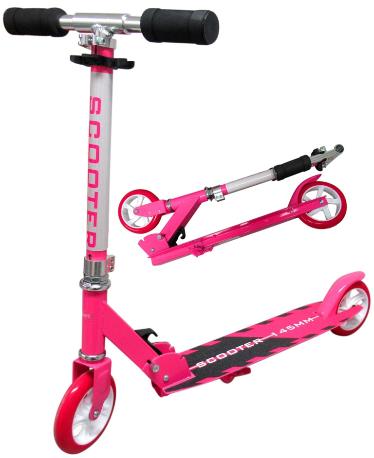 Skládací kovová dvoukolová koloběžka s výškově nastavitelnými řídítky a velmi pevnou konstrukcí do maximálního zatížení až 100 kg. Pro děti od 4 let až do 150 cm výšky.