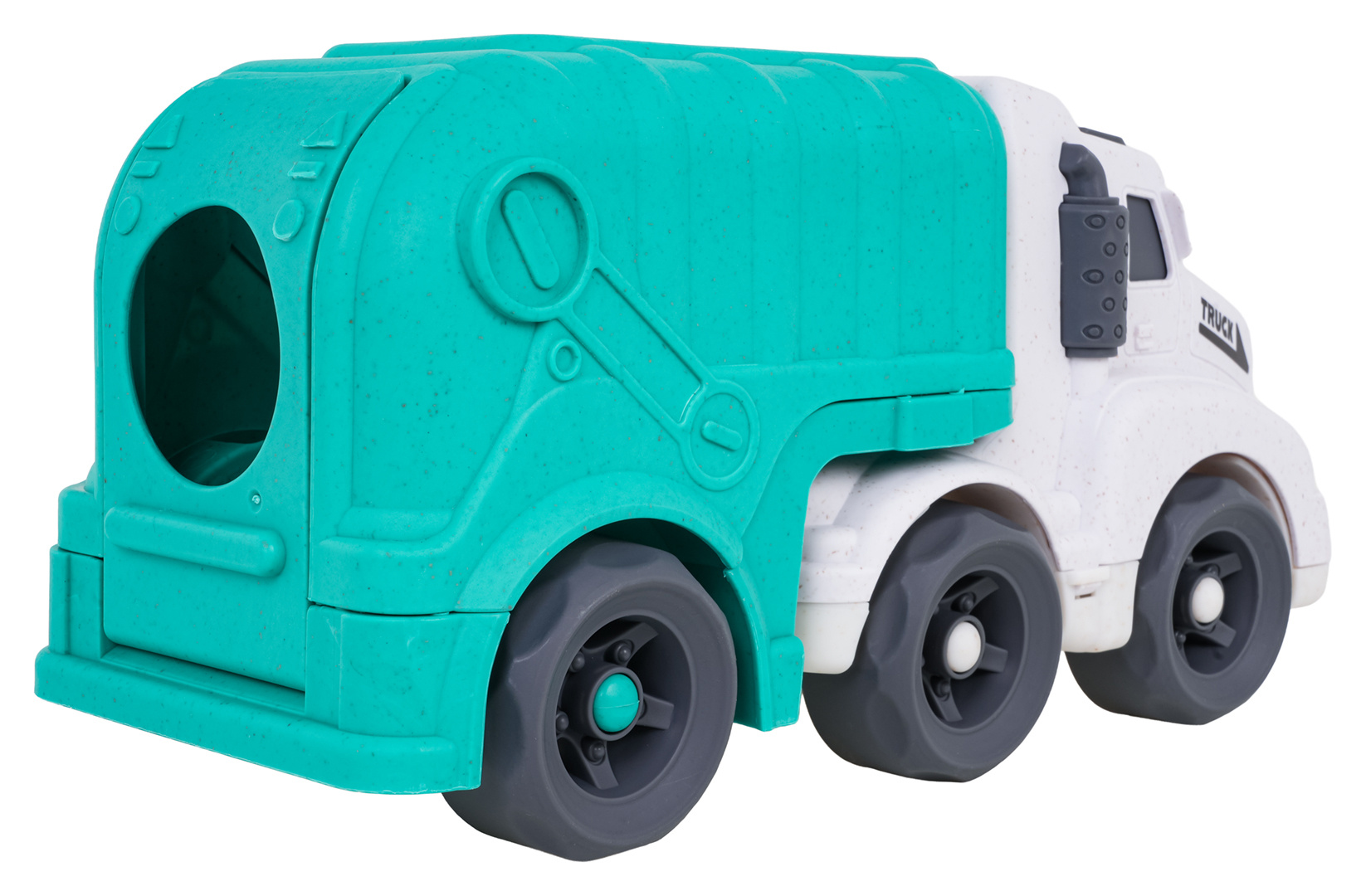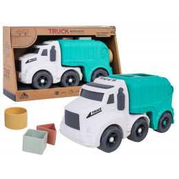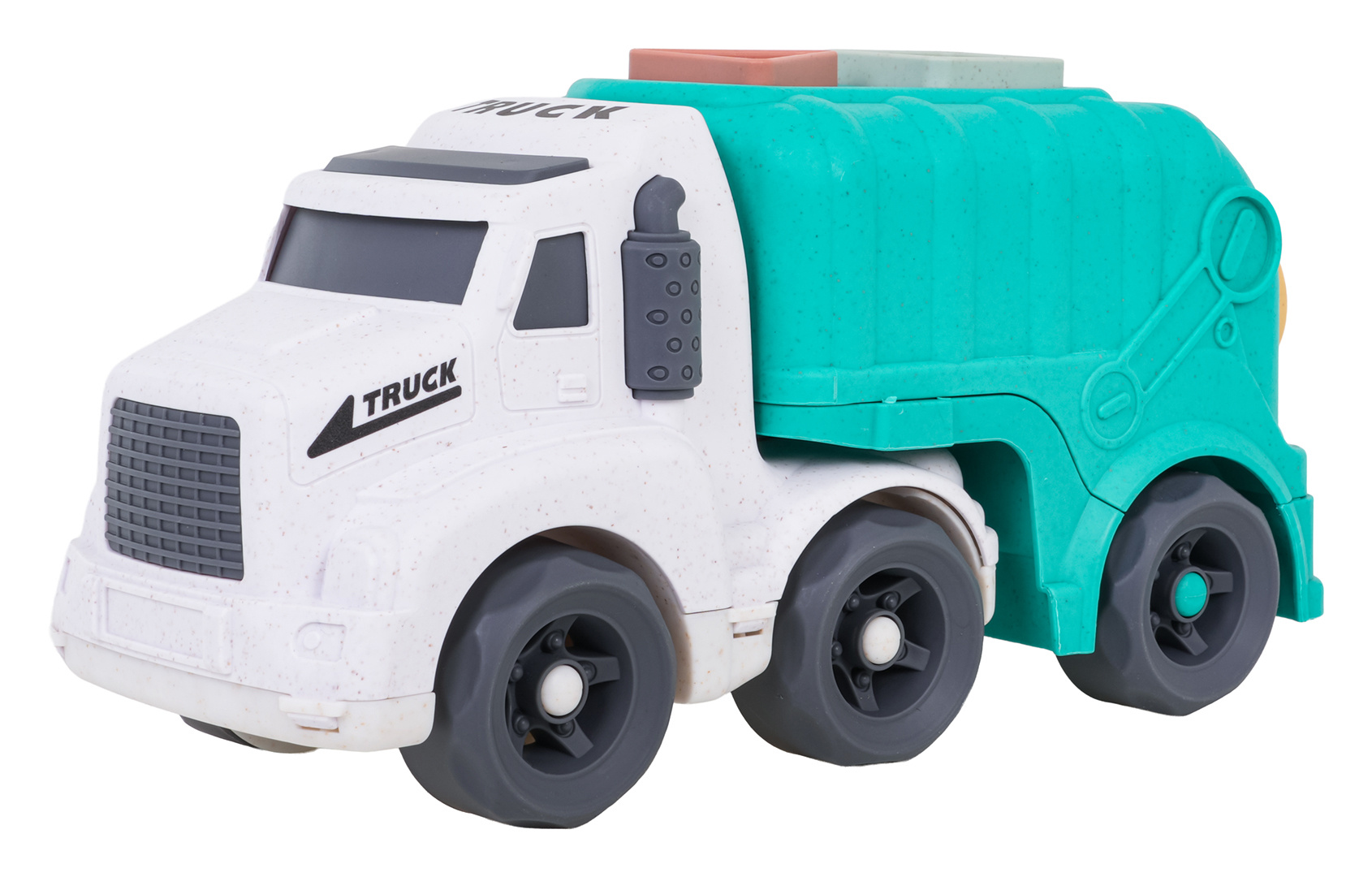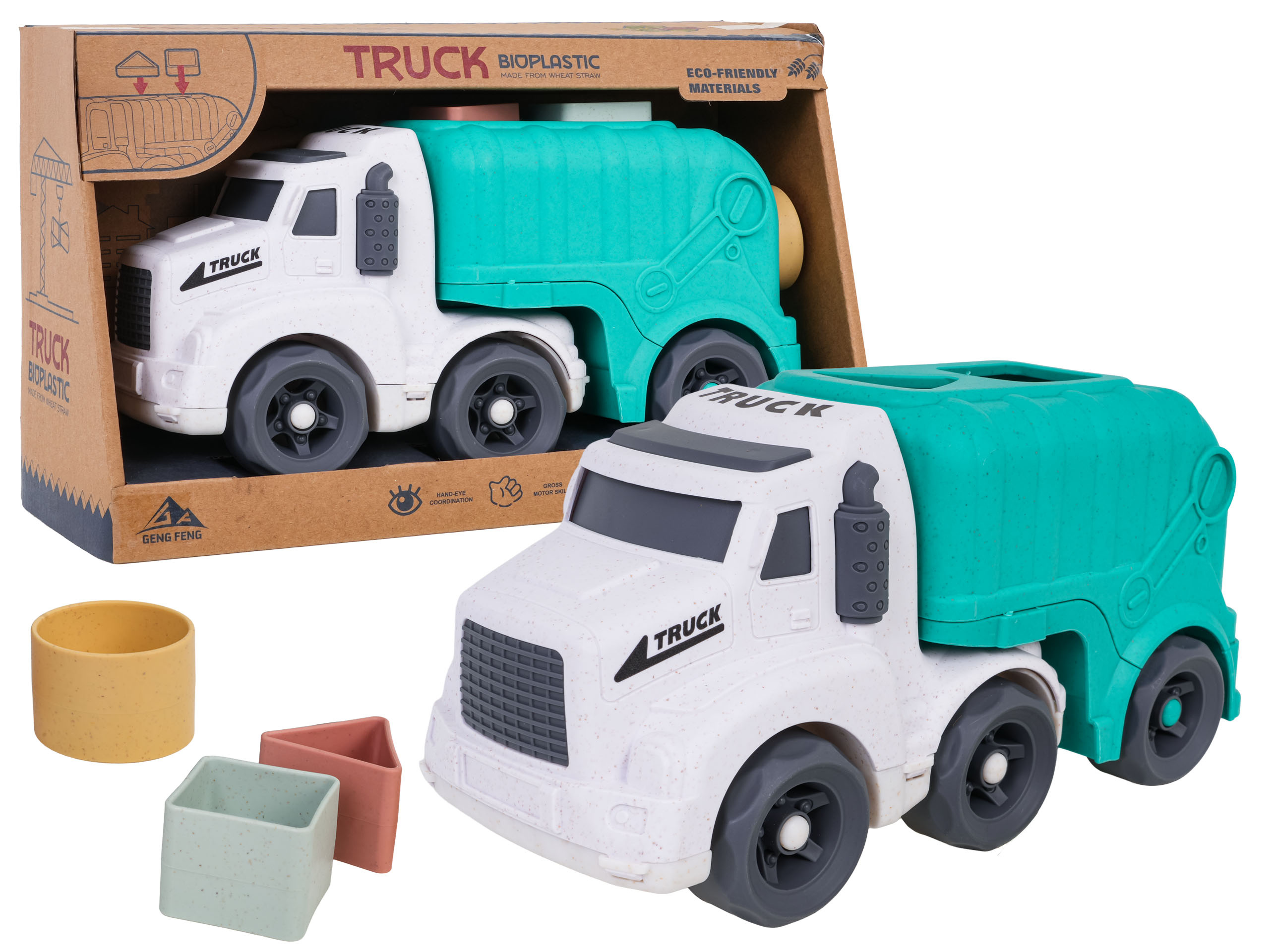 Vozidlo popelářský vůz s třídičem a kostkami, vyrobené z BIOplastiku pro děti od osmnácti měsíců, z ekologické série, šetrné k životnímu prostředí. Vozidlo bylo vyrobeno s důrazem na detaily, v krásných živých barvách a nemá ostré hrany. Na střeše popelářského vozu a na zadních dveřích se nachází tvarový třídič, kostky jsou součástí sady.