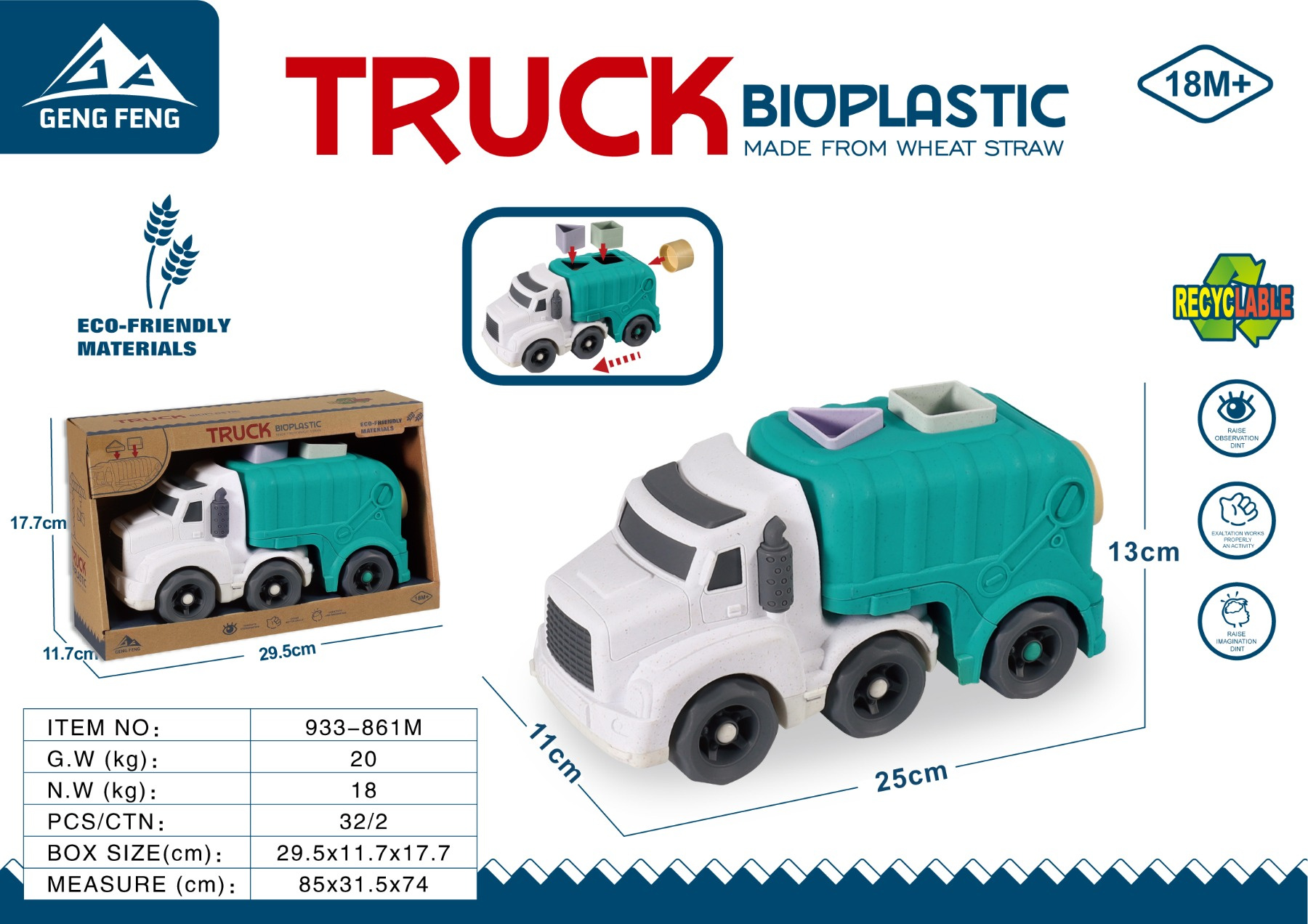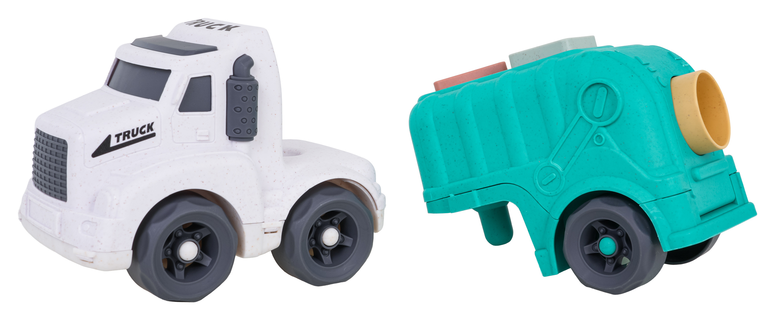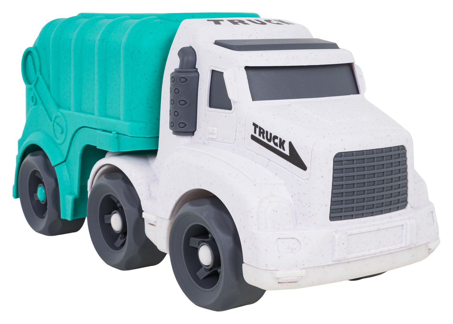 Vozidlo popelářský vůz s třídičem a kostkami, vyrobené z BIOplastiku pro děti od osmnácti měsíců, z ekologické série, šetrné k životnímu prostředí. Vozidlo bylo vyrobeno s důrazem na detaily, v krásných živých barvách a nemá ostré hrany. Na střeše popelářského vozu a na zadních dveřích se nachází tvarový třídič, kostky jsou součástí sady.