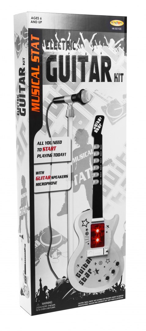 | | Jedinečná elektrická kytara pro budoucí kytaristy spolu s mikrofonem v balení. Kytara je nesmírně inspirativní hudební nástroj ze skupiny drnkacích strun, který hraje mimořádně důležitou roli v blues, country, flamencu, rocku a mnoha formách populární hudby. Dítě již v prvních letech života projevuje zájem o hračky, tančí, zpívá, zkouší hrát na jednoduché nástroje. Přítomnost hudby ve vývoji dítěte má rozhodně pozitivní dopad. Talent odhalený v takto rané fázi má potenciál se v budoucnu významně rozvinout, proto by tento okamžik neměl být promeškán. Pokud se vaše dítě dívá na kytaristy s nepředstavitelnou úctou, předstírá, že hraje na imaginární kytaru, a má smysl pro rytmus - pak může mít talent pro hru na jakoukoli kytaru. Hračka obsahuje 6 kovových strun, 3 kytarové tóny, 7 melodií a 12 krátkých sól. |