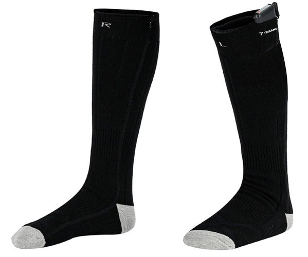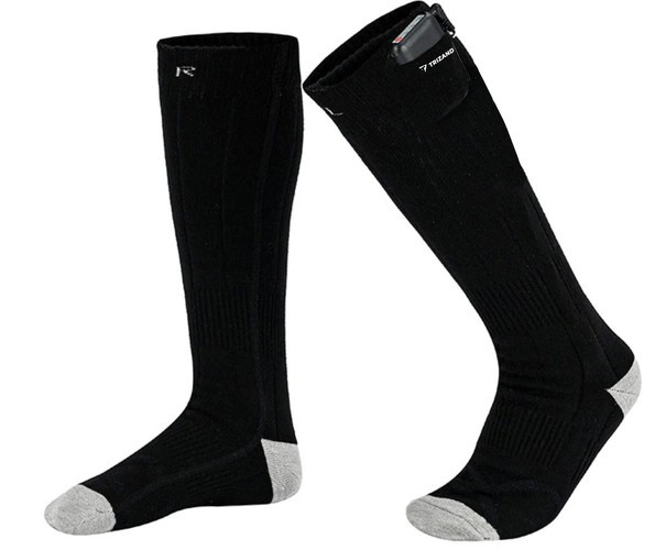 BATERIE SOUČÁSTÍ – k ponožkám byly připevněny dvě baterie. Po spojení je schováte do speciálních kapes v horní části ponožek. Nabíjení probíhá přes USB kabel. Díky rozdvojce je kabel uzpůsoben k nabíjení dvou baterií současně.