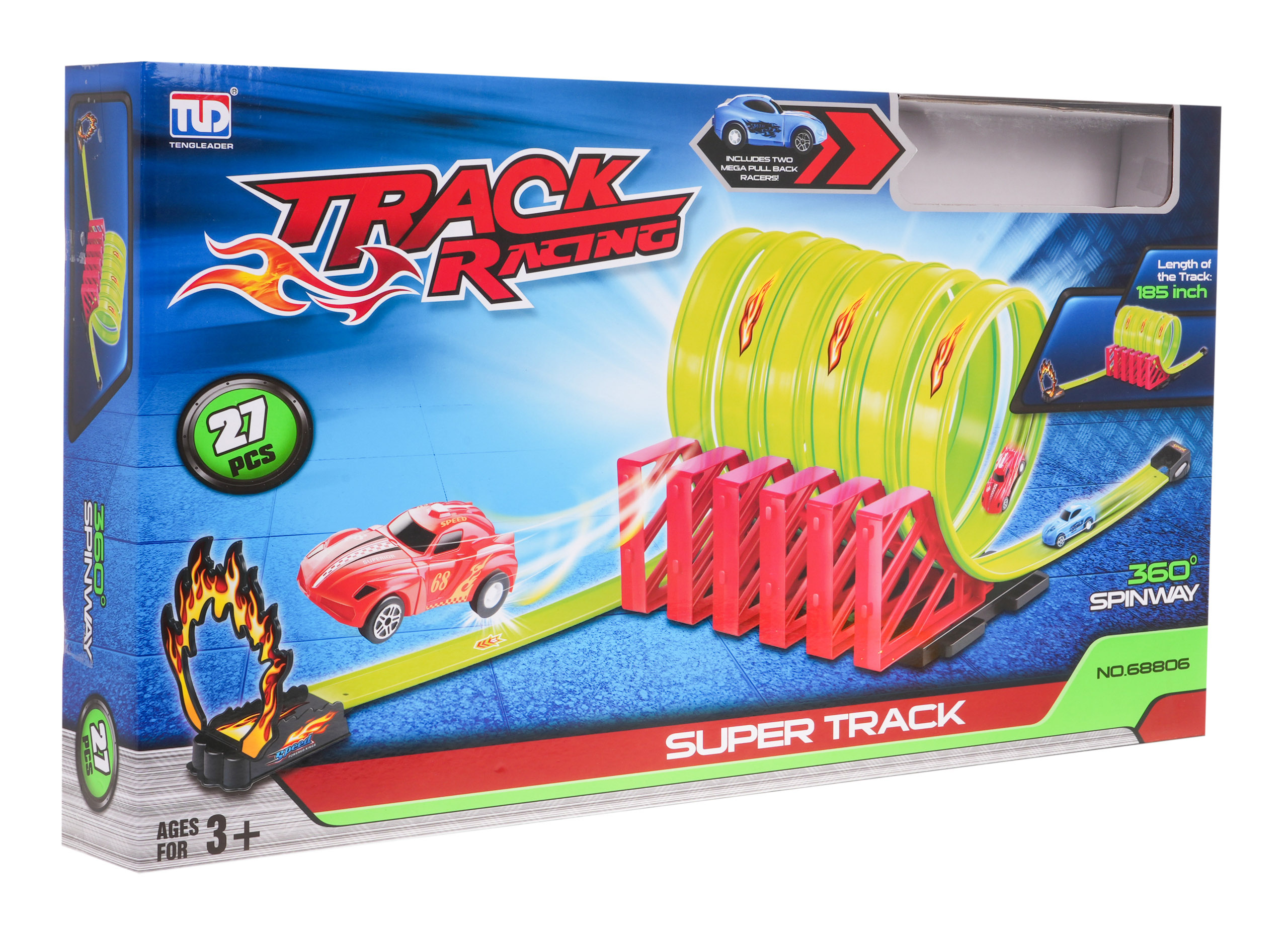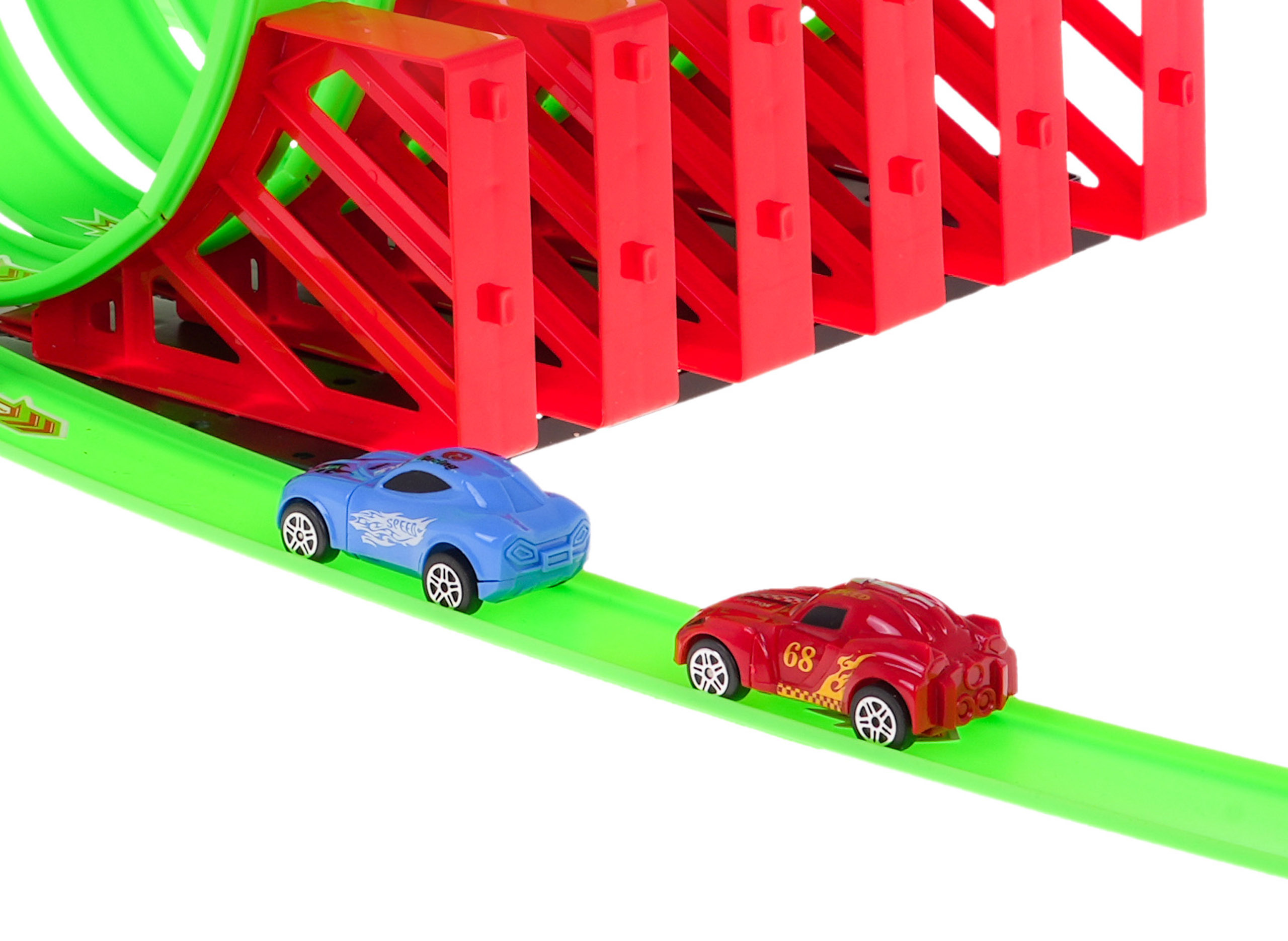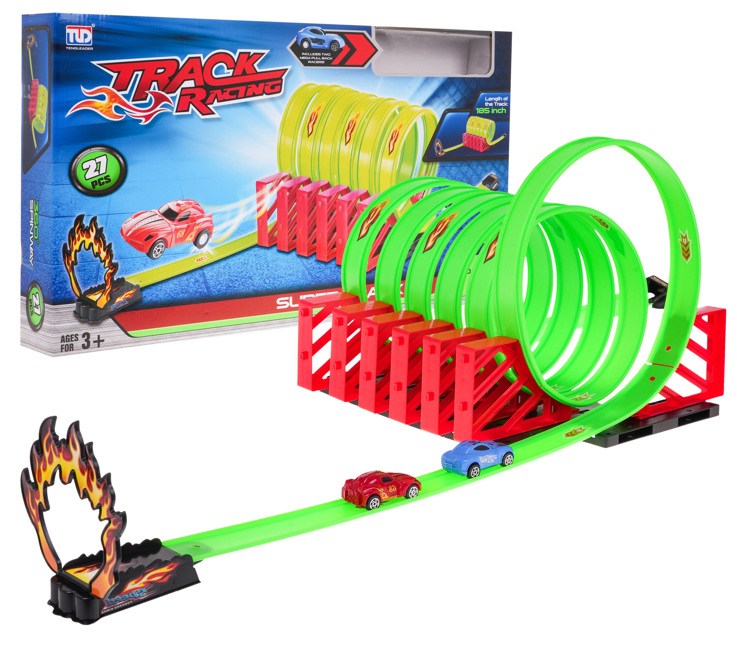 Extrémní závodní dráha se šesti smyčkami a autíčky je určena pro děti od 3 let. Soubor se skládá z 27 prvků. Celková délka dráhy je 185 cm. Dráha obsahuje rovné úseky, smyčky a odpalovací zařízení s "ohnivou" smyčkou. Vozy mají pohon Pull Back, který nevyžaduje žádné baterie. Stačí jemně zatlačit na auto dozadu a ono začne přeskakovat dopředu. Vozidlo je na startu nastaveno tak, že po zrychlení nejprve bleskově projede rovným úsekem, poté absolvuje šest smyček s otočkou o 360 stupňů, vjede do rovného úseku a proletí smyčkami "plamenů".autíčka jsou konstruována ze dvou pohyblivých částí, takže dokonale kopírují tvar dráhy a nespadnou. Dobrá zábava zaručena.