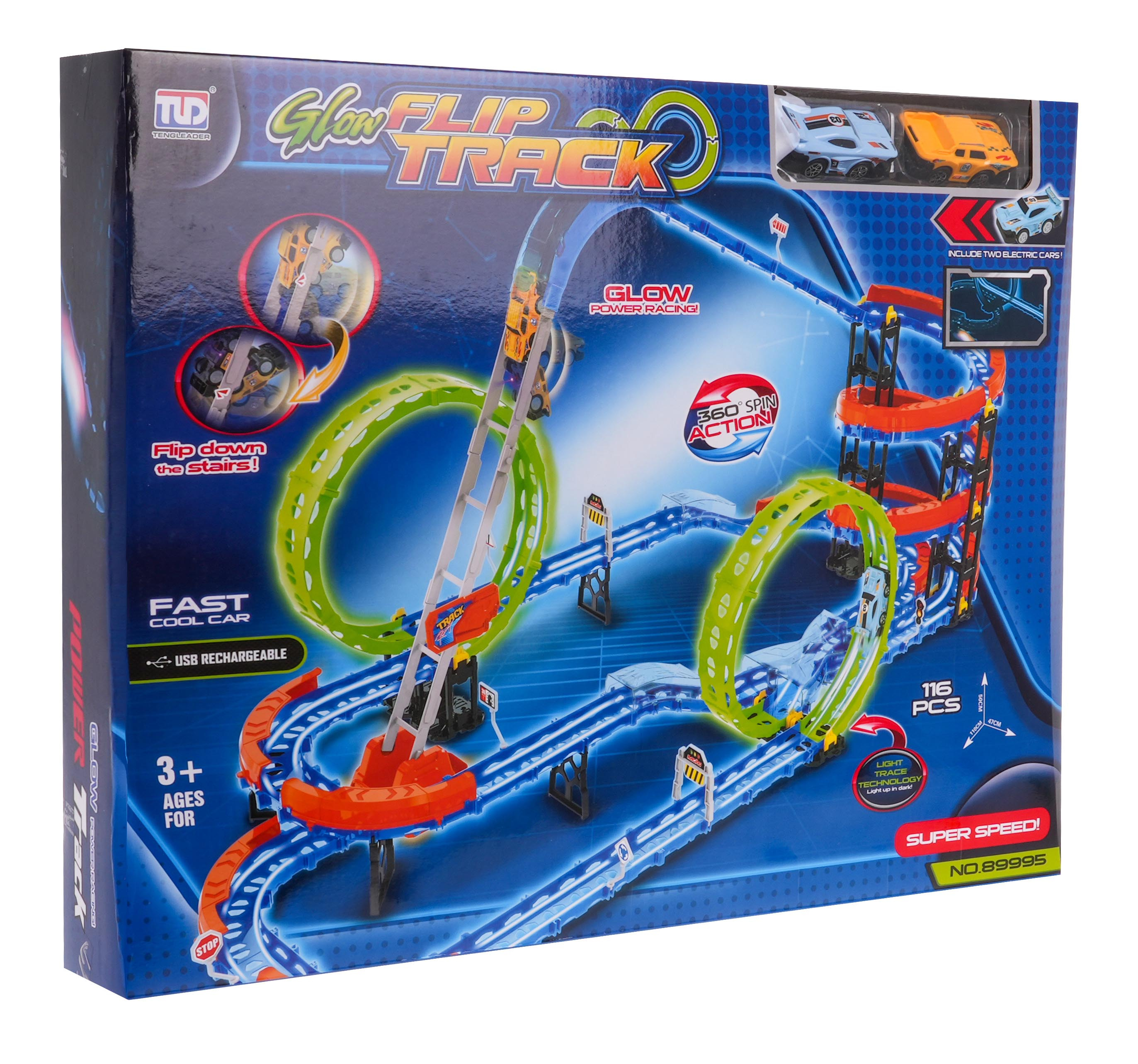 Velká víceúrovňová závodní dráha s žebříkem, ostrými zatáčkami, smyčkami a autíčky je vhodná pro děti od 3 let. Stavebnice se skládá ze 116 samostatně sestavitelných dílů a obsahuje rovné úseky, ostré zatáčky se zábranami proti vypadnutí vozidla z dráhy, dvě 360stupňové smyčky a žebřík. Smyčky jsou navíc fluorescenční a ve tmě svítí. Vozidla obsažená v sadě jsou velmi rychlá a zespodu osvětlená. Jsou napájeny baterií 3,7 V, která je umístěna ve vozidlech.