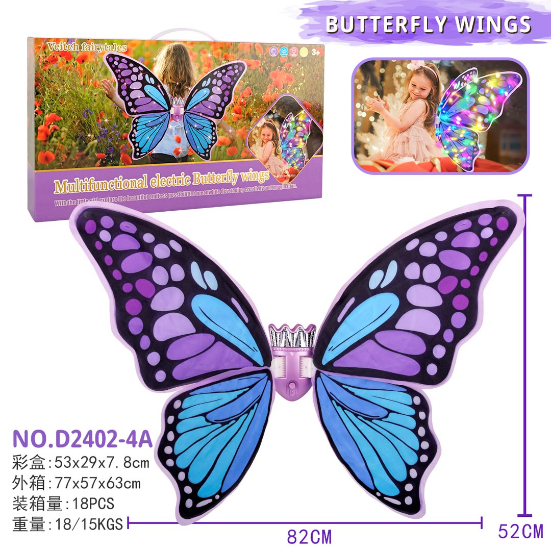 | Kouzelná, fialová motýlí křídla s efektem světla, pro děti od tří let. Hračka byla vyrobena s důrazem na detaily, vaše ratolest se v ní bude cítit kouzelně. Křídla ideální budou na ples, představení nebo pro každodenní zábavu. Hračka je napájena bateriemi typu 4 x AA 1,5 V (nejsou součástí balení). Křídla pracují v několika režimech: - hudba, třepotání, světélka na křídlech, - třepotání, světla, - třepotání, blikání světla, - třepotání.