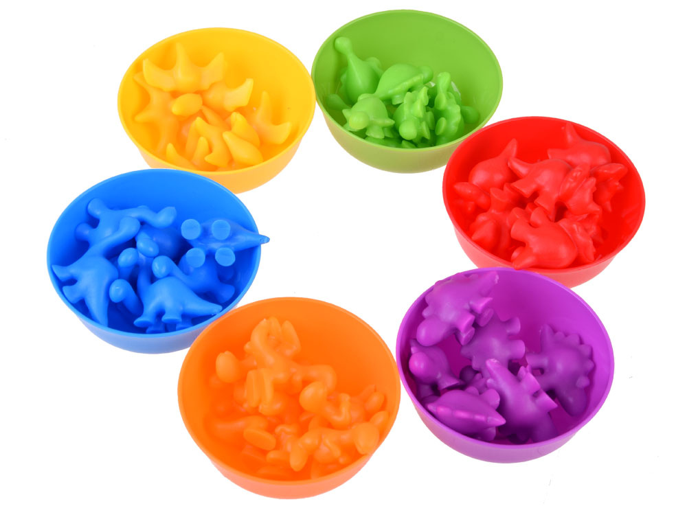 Sada figurek dinosaurů je skvělým způsobem, jak se naučit počítat a poznávat barvy.