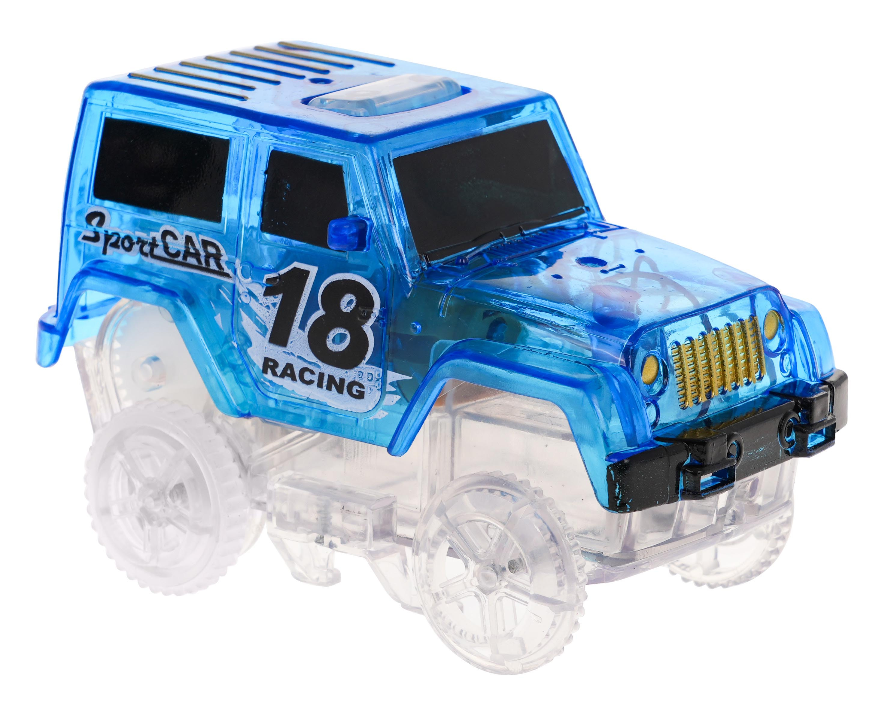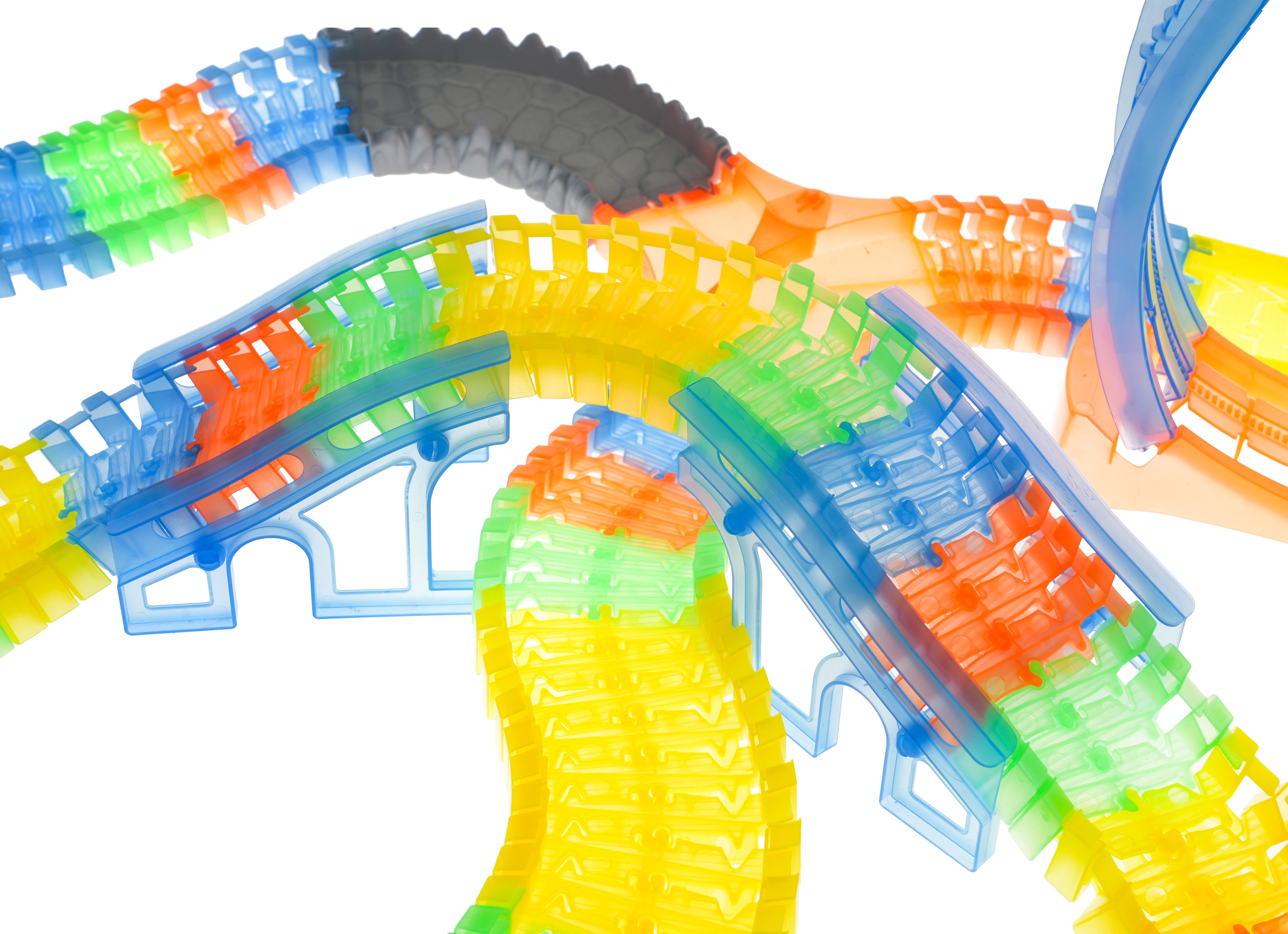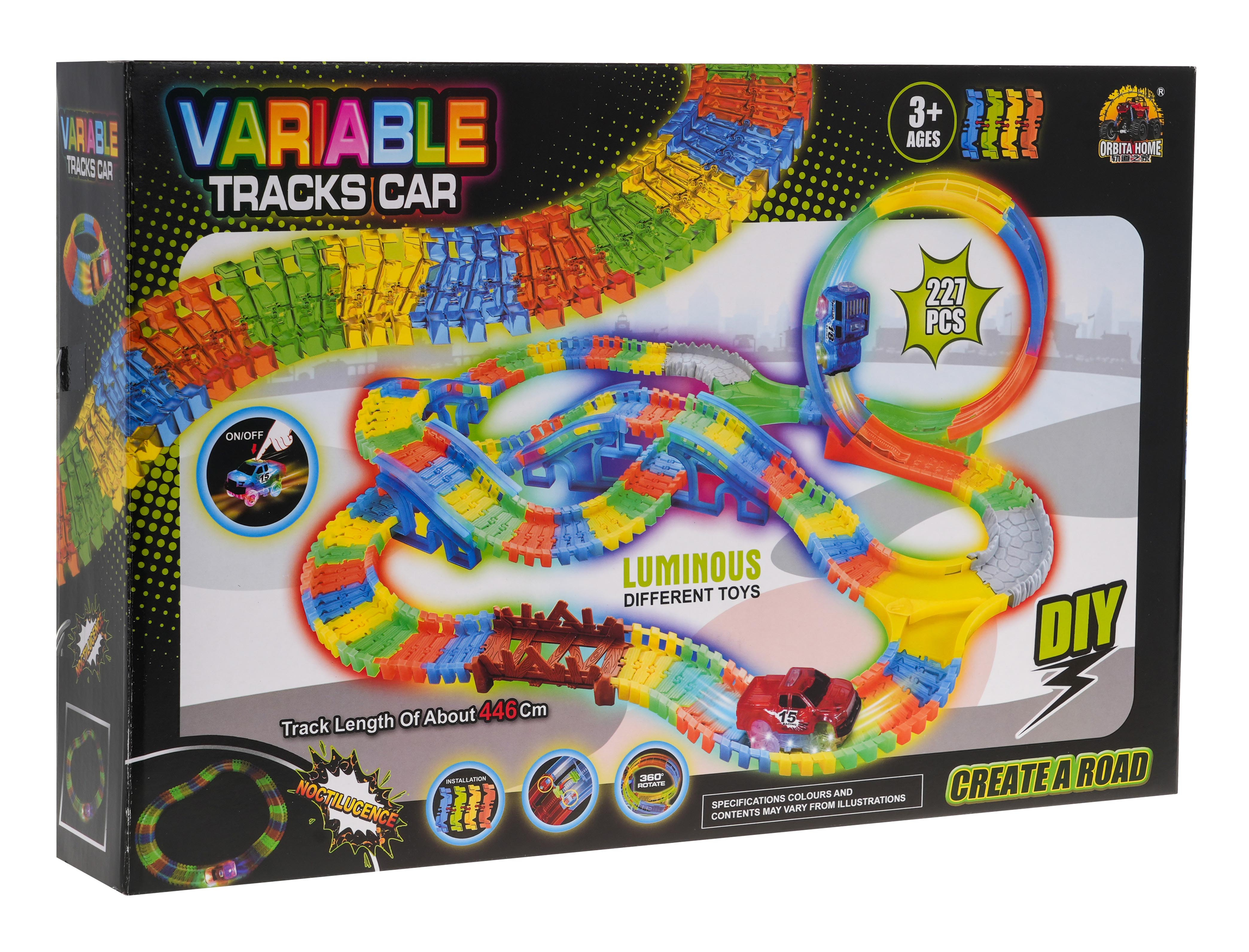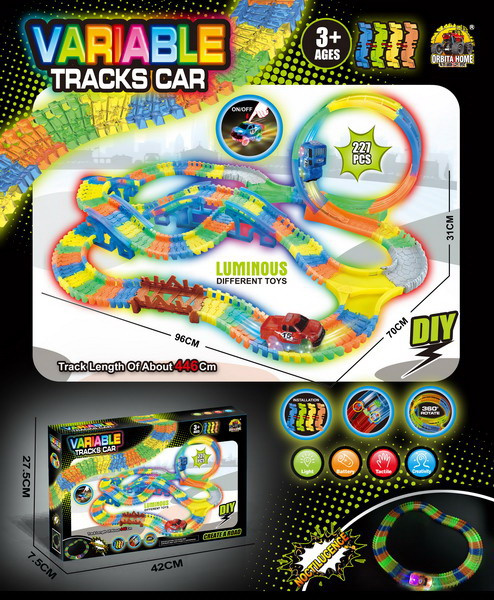 Dráha svítící ve tmě se smyčkou a autíčkem v ceně je určena pro děti od 3 let. Pásy jsou flexibilní, lze je libovolně kombinovat, otáčet, zvedat, přeskupovat, a to vše za jízdy.kromě toho jsou stopy fluorescenční a ve tmě svítí. Vozidlo, které je součástí sady, má podsvícení LED, jízda ve tmě vytváří úžasný efekt. Vozidlo je napájeno 2 bateriemi AA 1,5 V, baterie nejsou součástí balení. Vůz nastartujete stisknutím tlačítka na střeše. Celková délka dráhy je 446 cm.